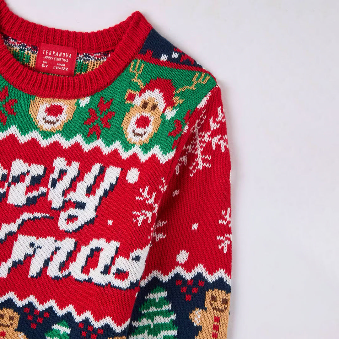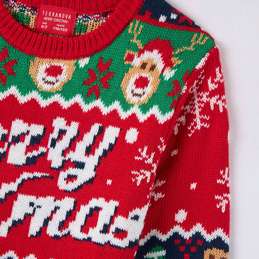 Jacquard Sweater with Red Christmas Writing