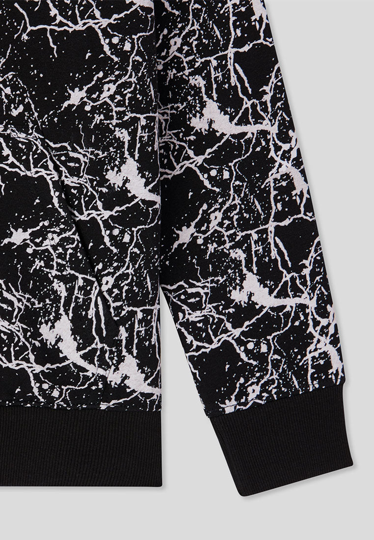 It features an all-over marble effect print and text on the front, perfect for adding a unique touch to everyday outfits.