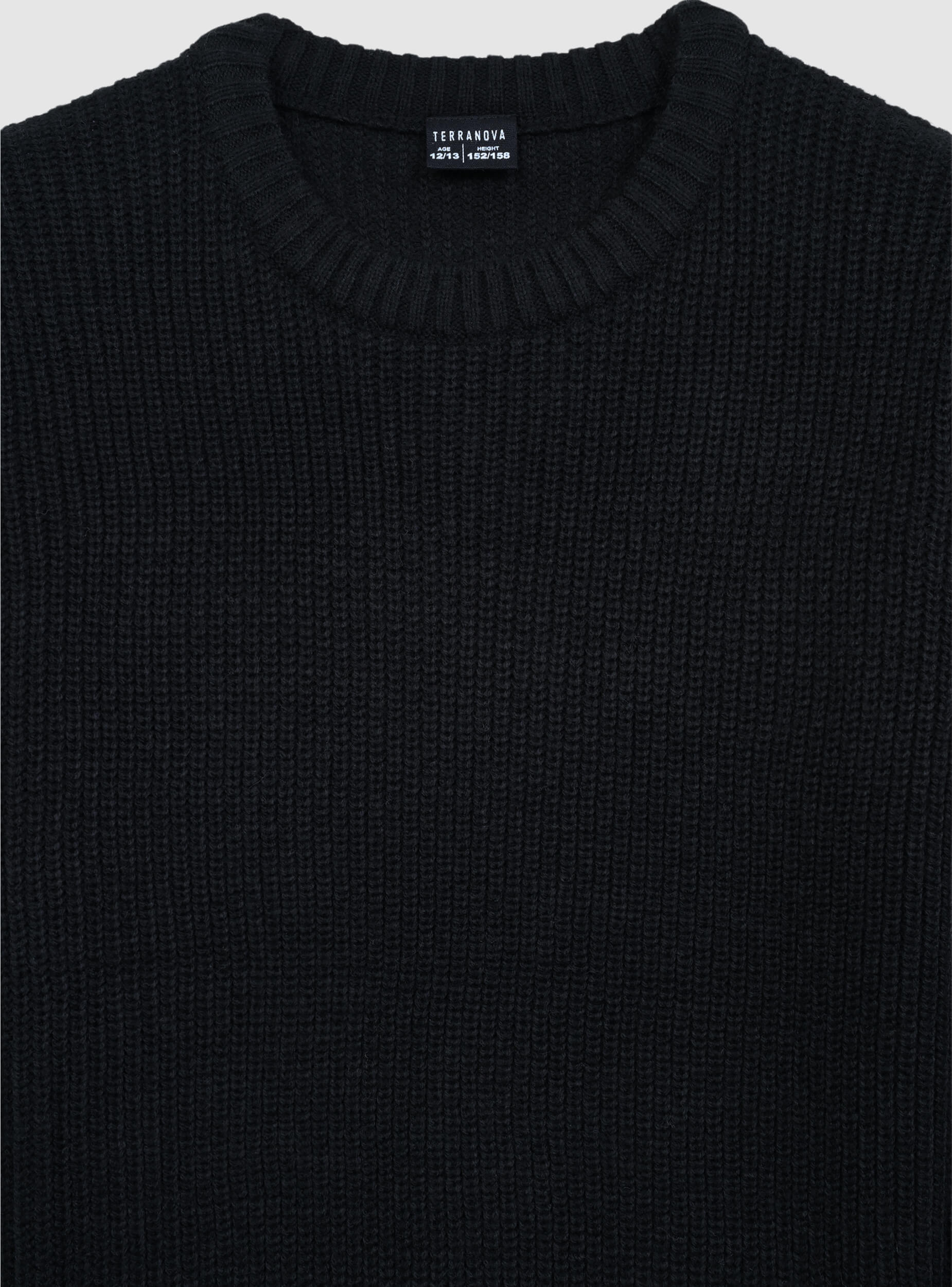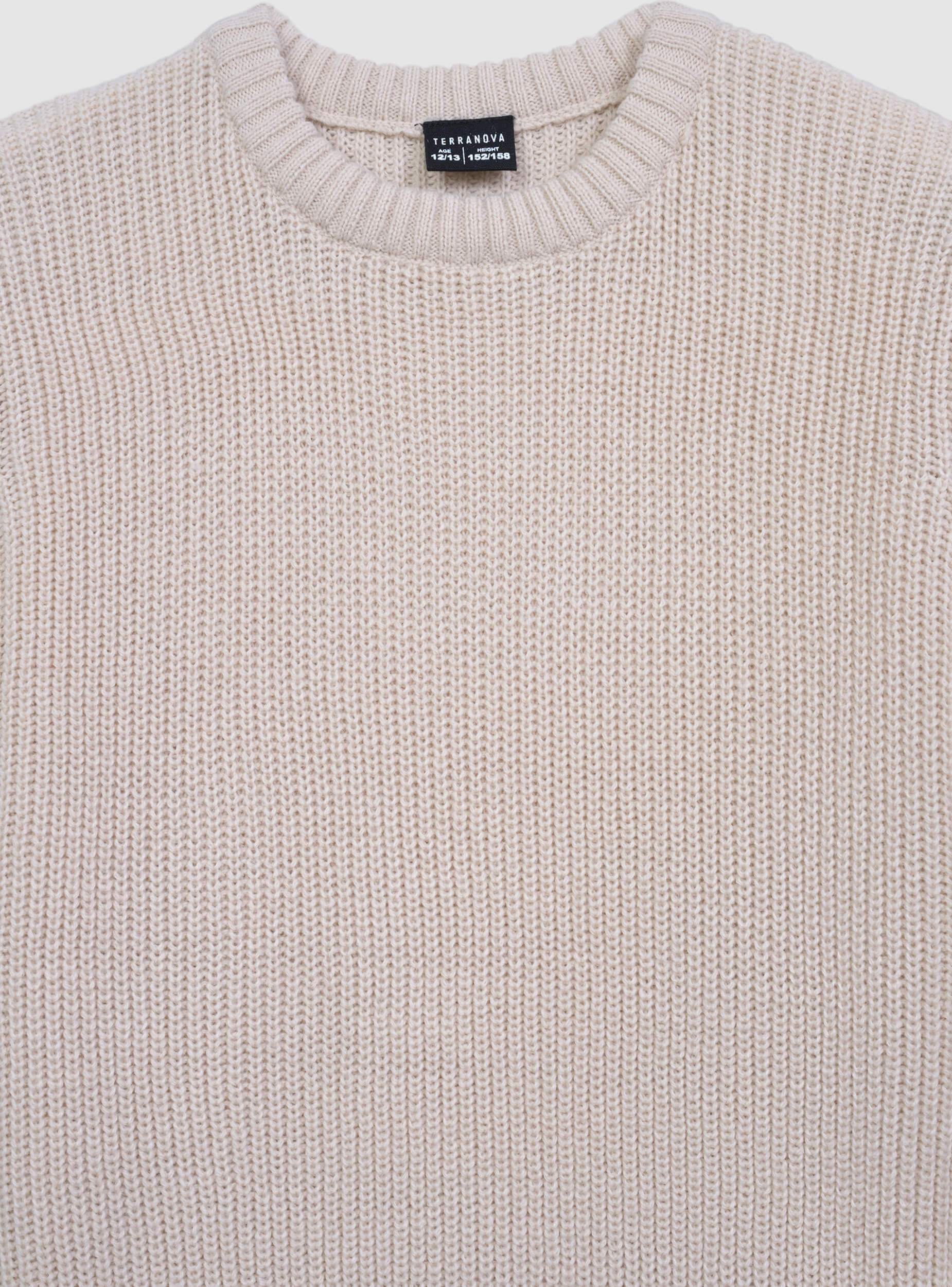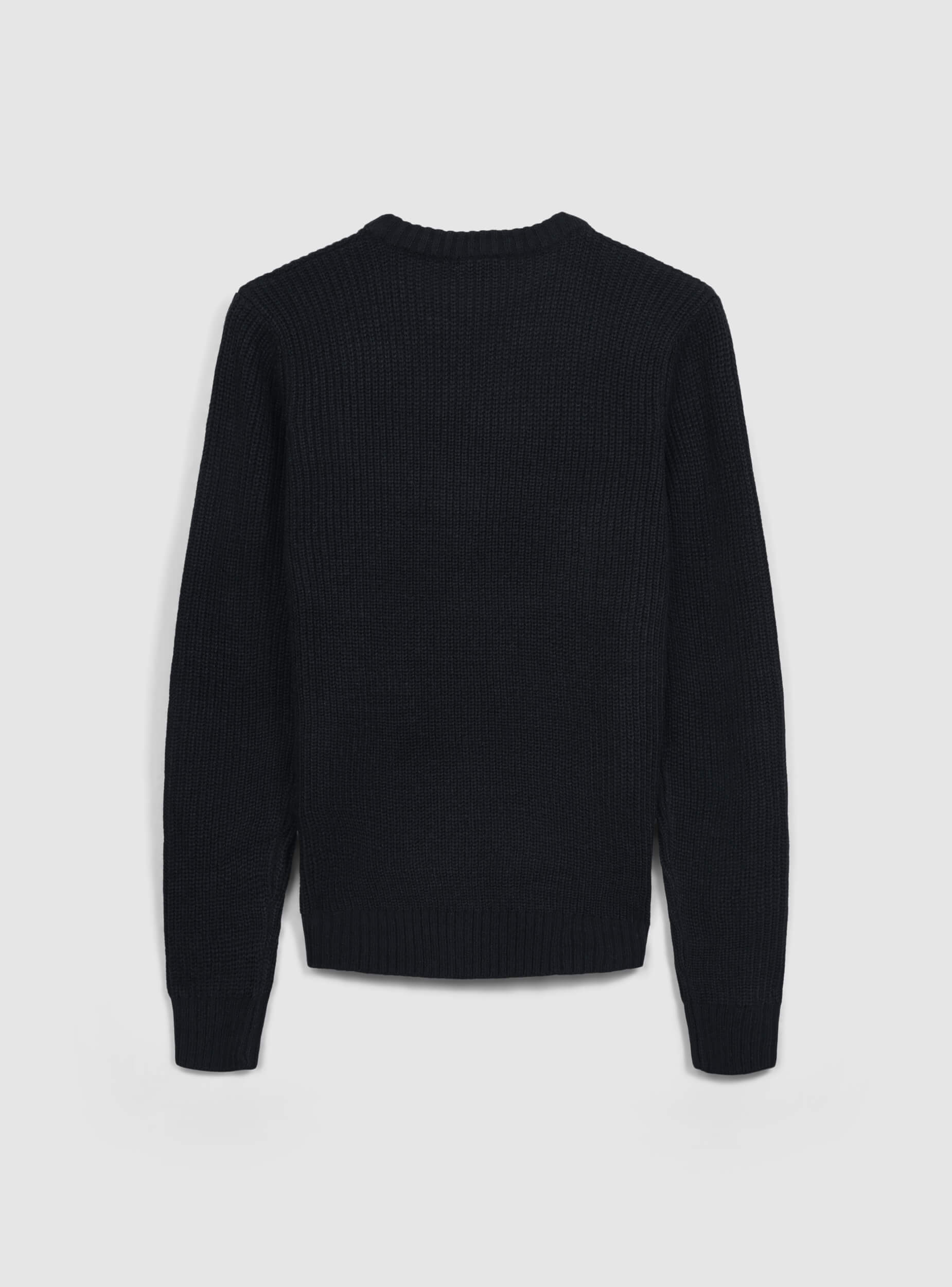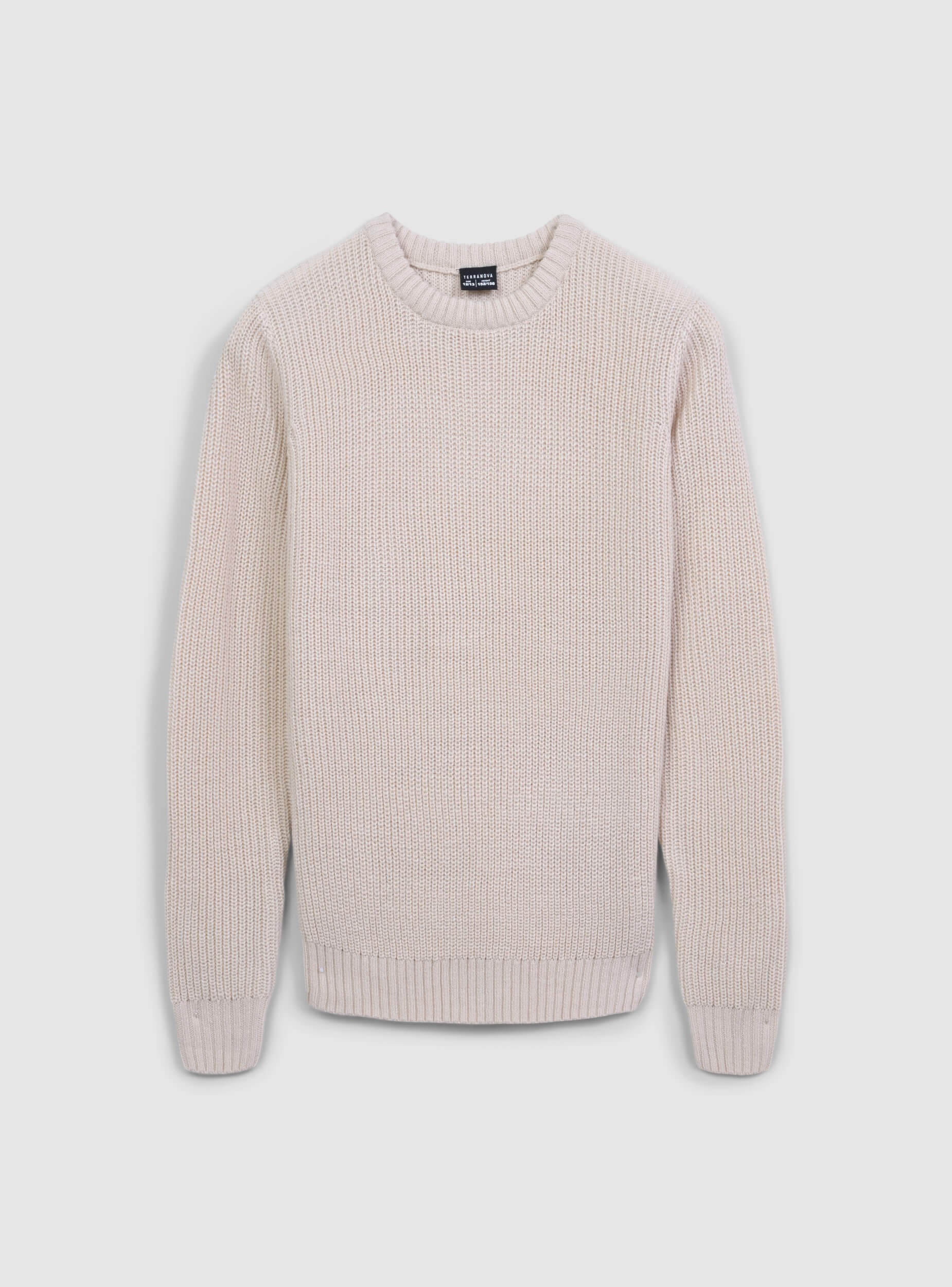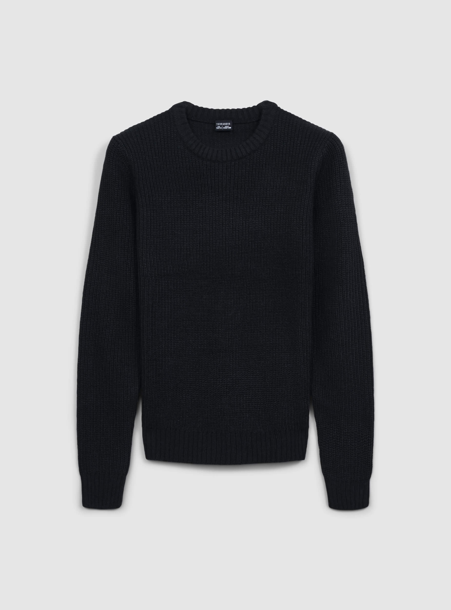 Crafted with a subtle ribbed knit pattern, this sweater provides a refined texture that adds interest without being overpowering.