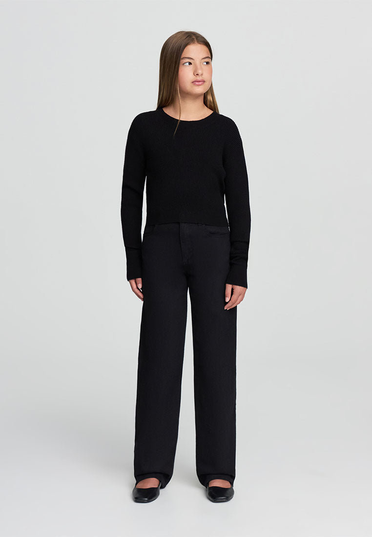 A solid-color girl's sweater, ideal for versatile and modern looks.
