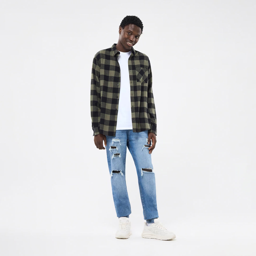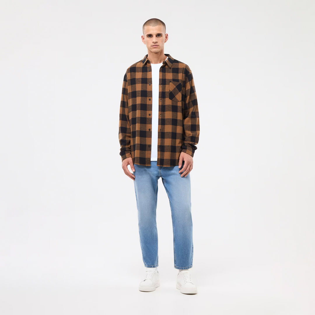 Long-sleeved men's shirt in flannel fabric