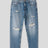 • They feature decorative rips and a distressed wash, with a button and zip closure.