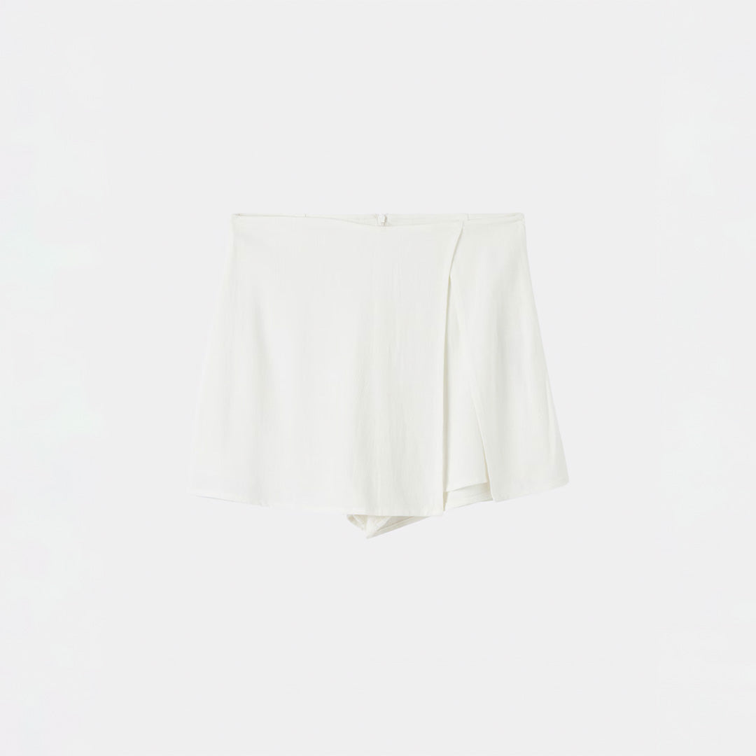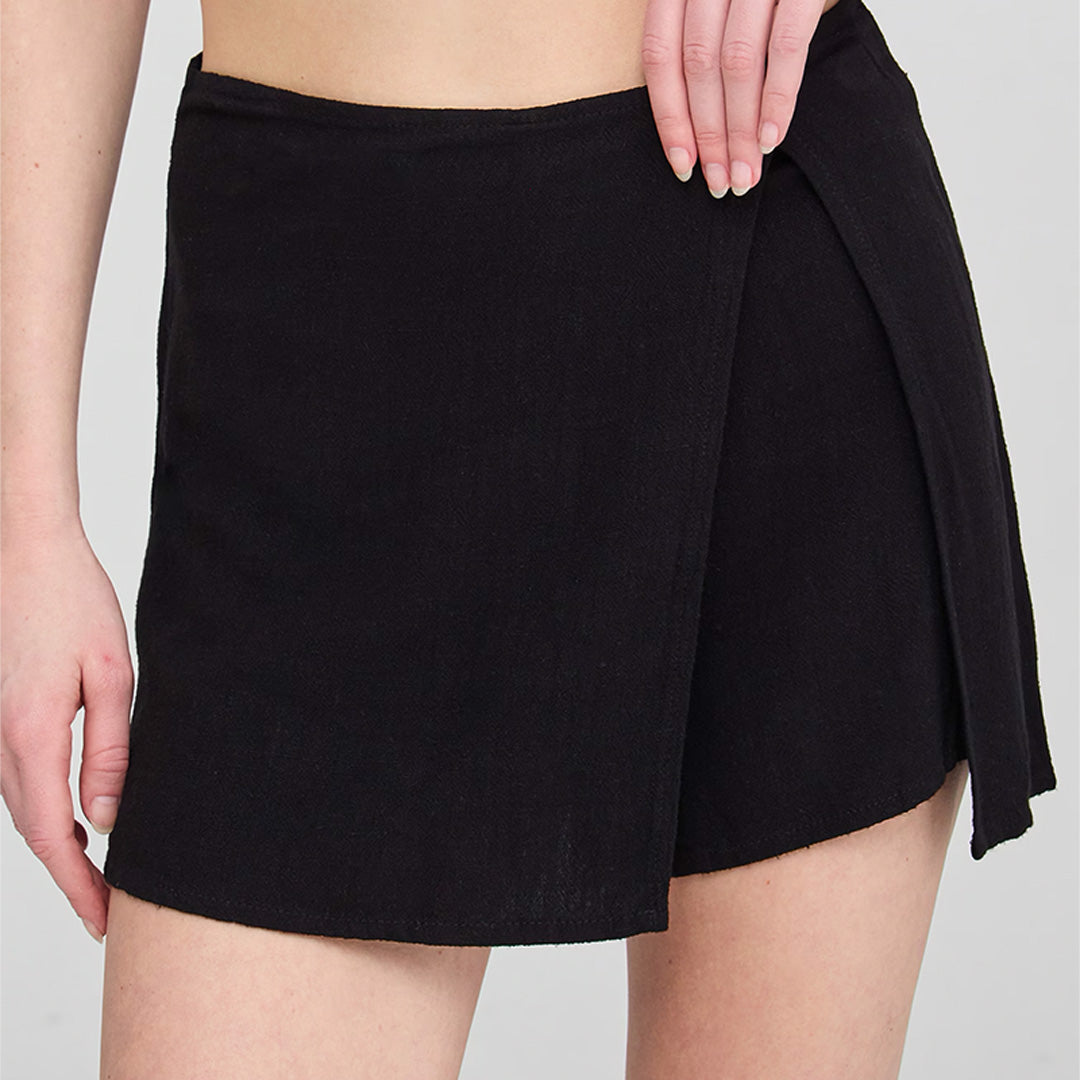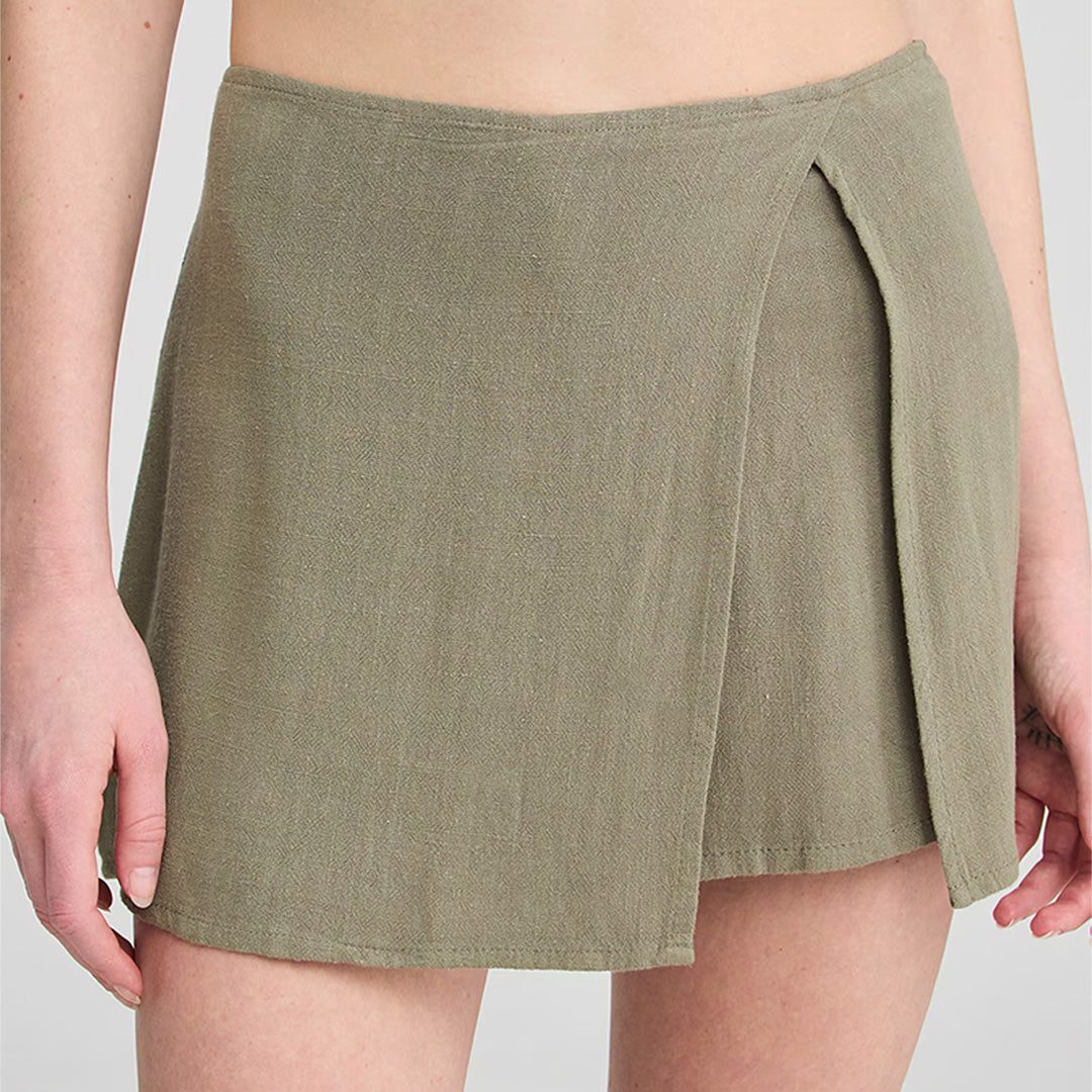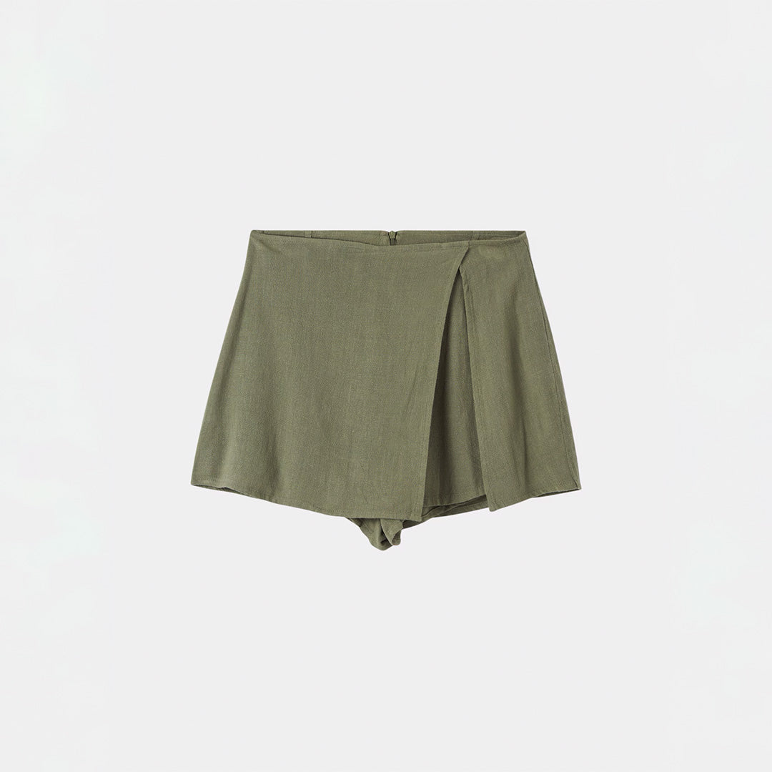 - Women's skirt with shorts in solid color linen and viscose fabric