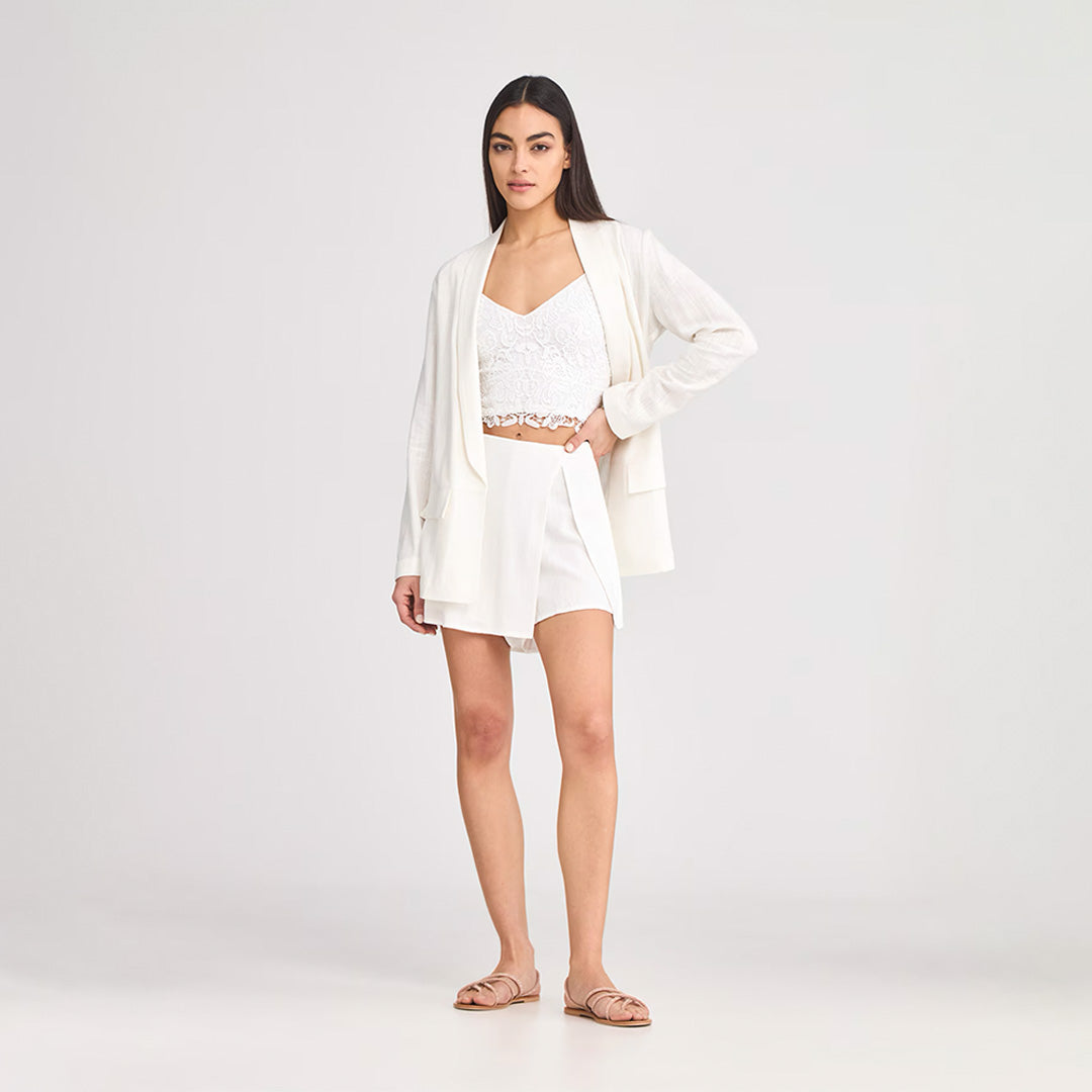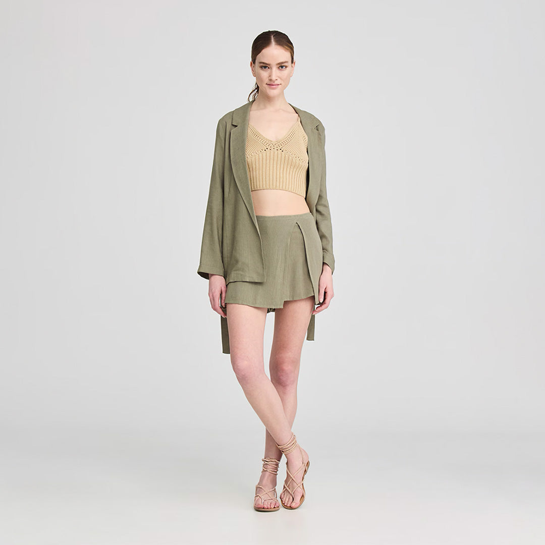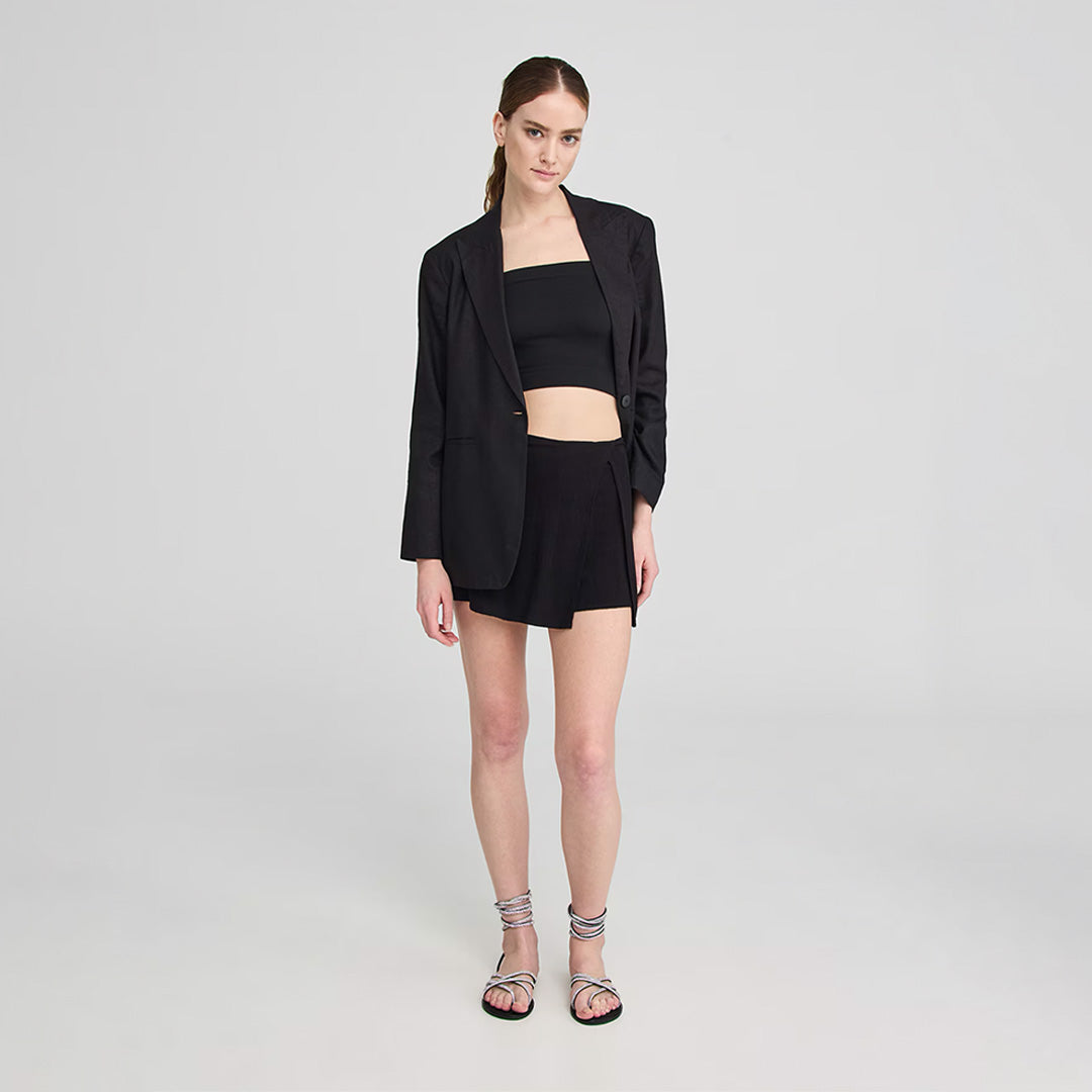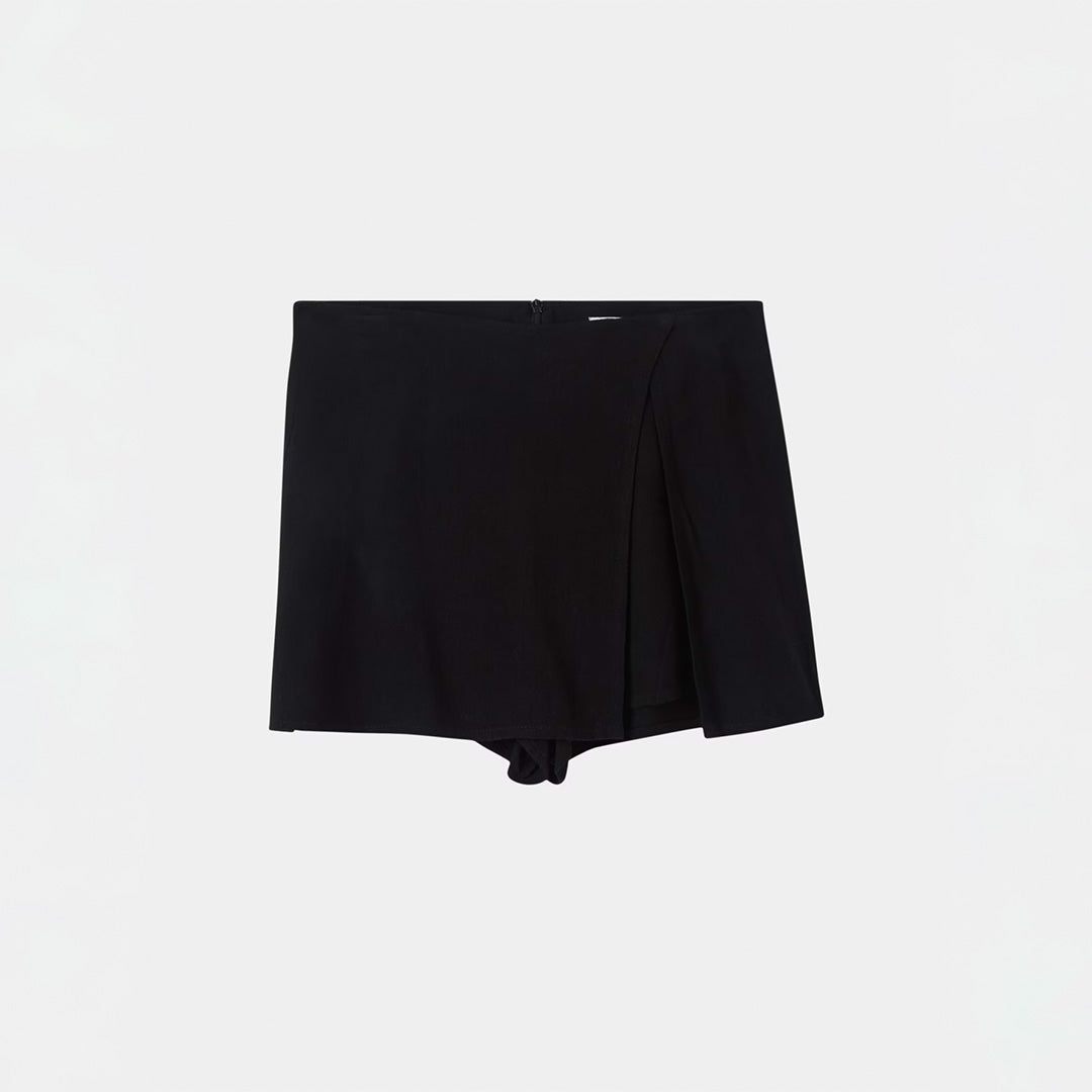 - Women's skirt with shorts in solid color linen and viscose fabric