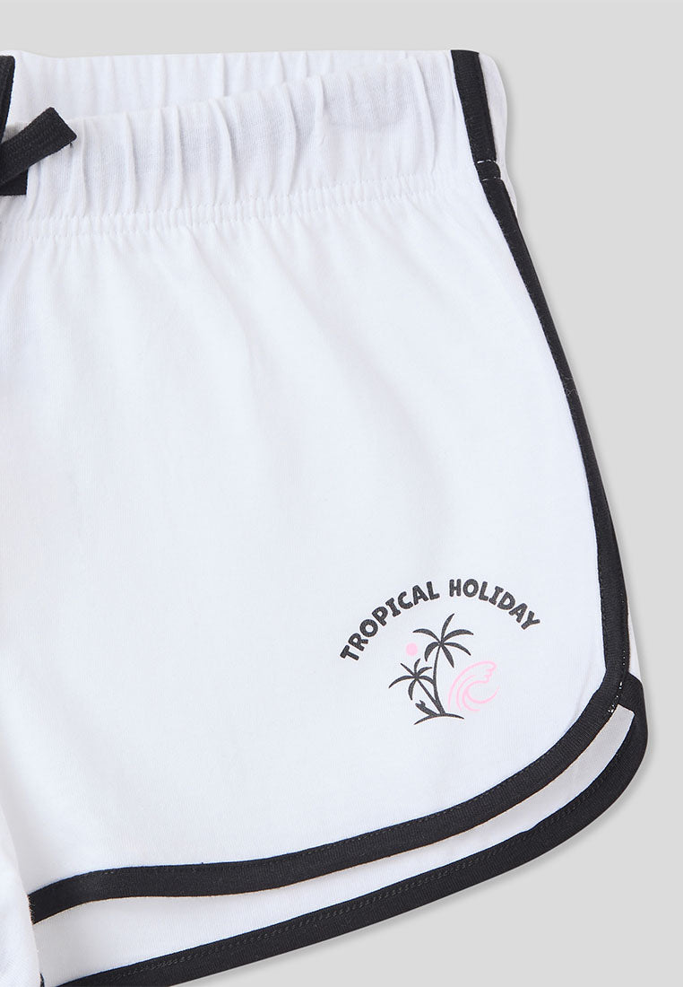 Girls' shorts with a vibrant front print, featuring a simple and practical design.