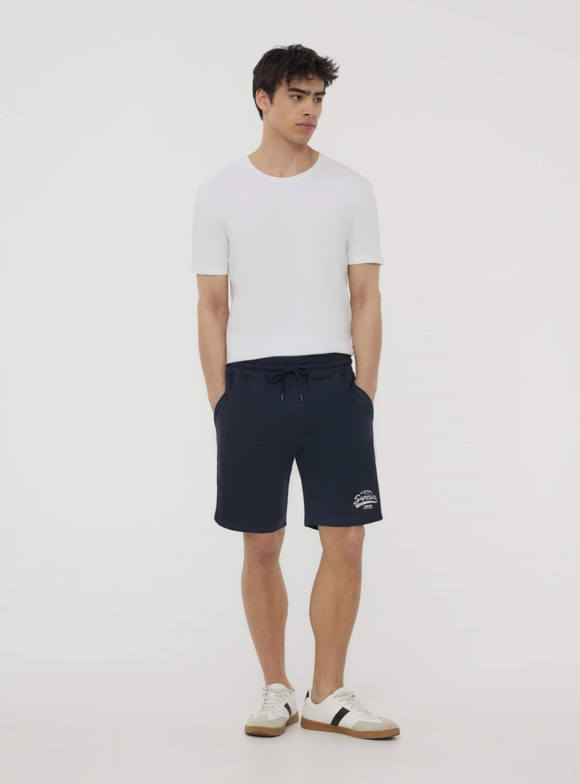 Characterized by a regular fit, they have a print and side bands that add a touch of style.