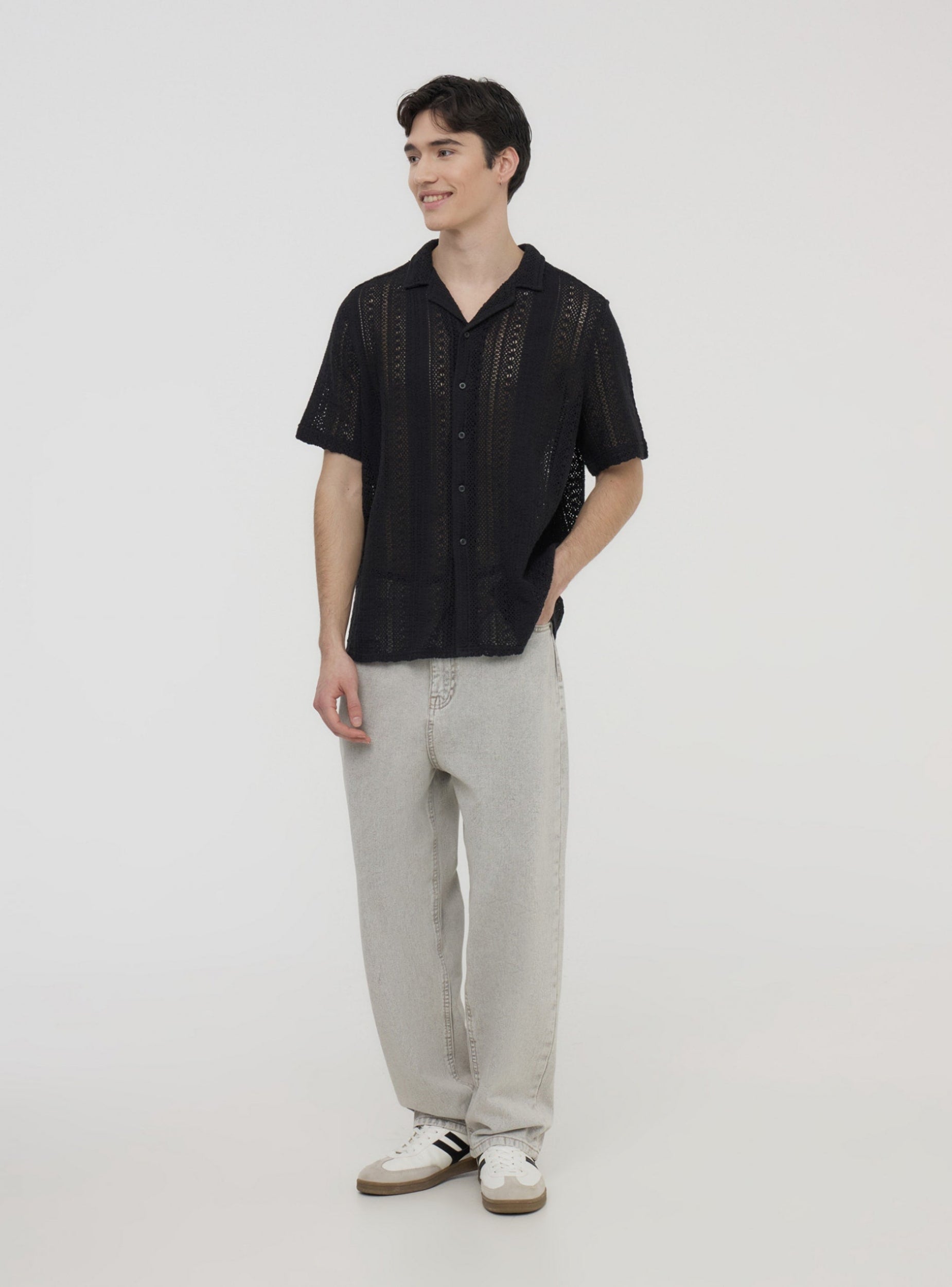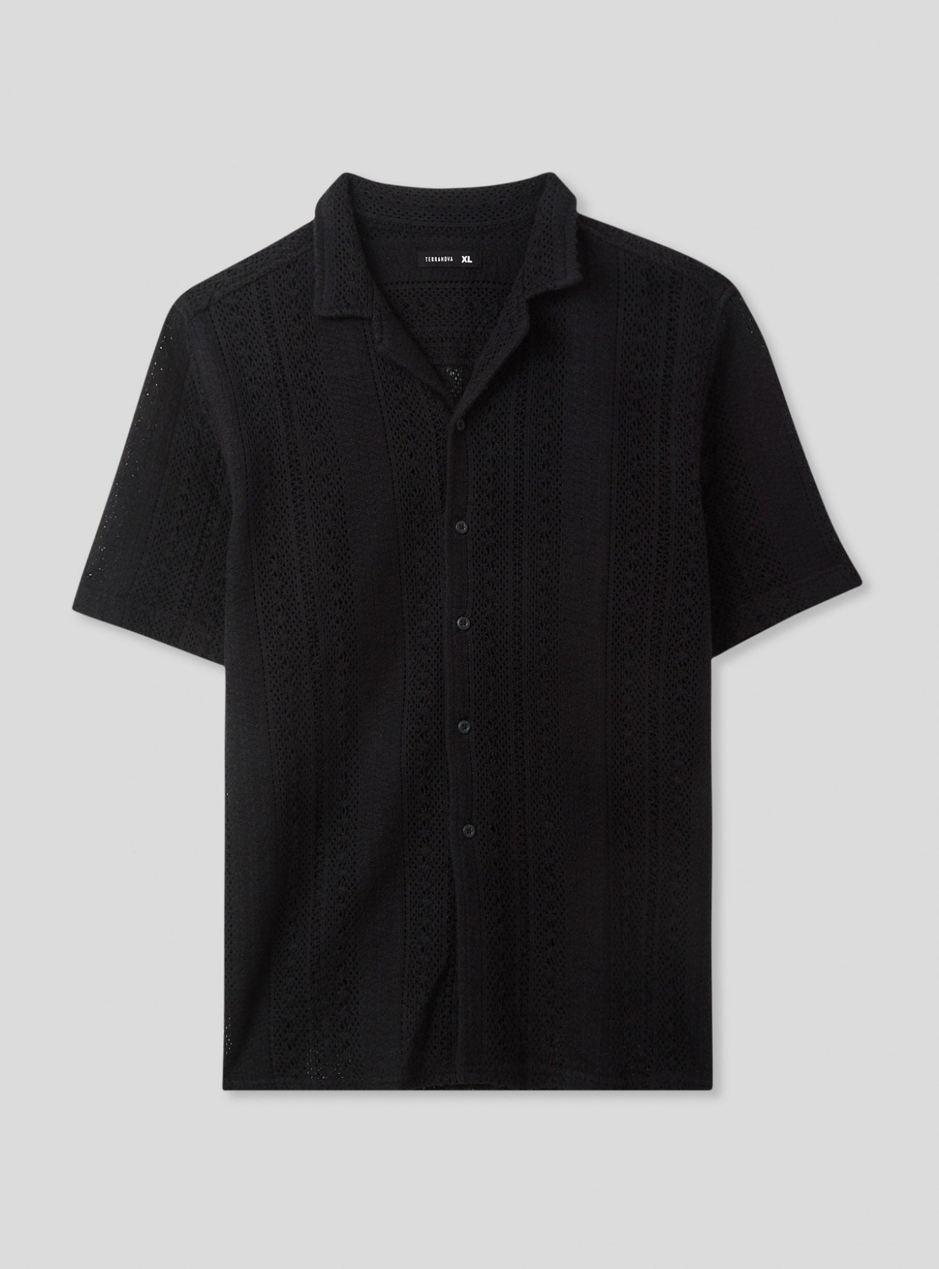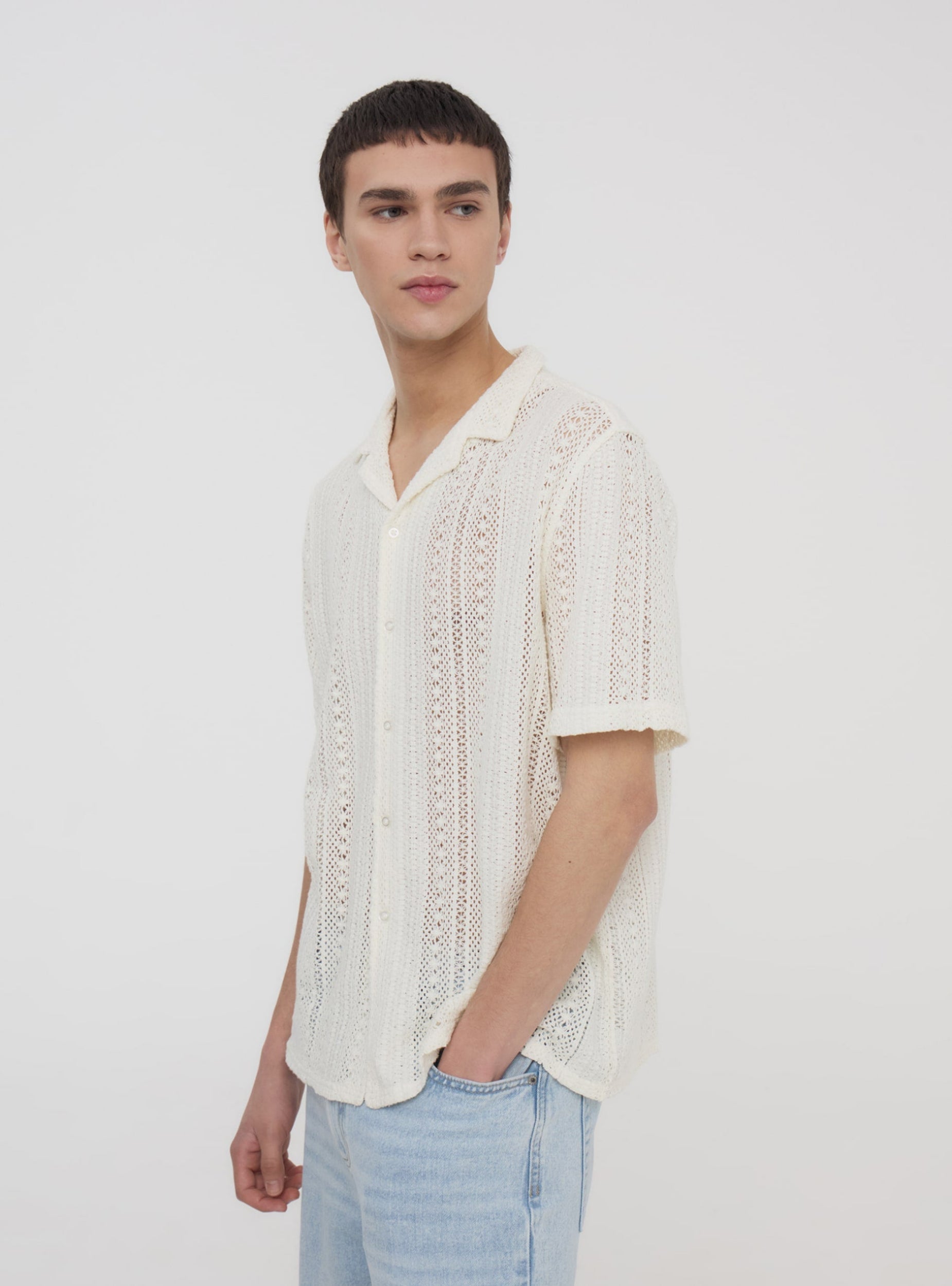 Men's bowling shirt with a crochet design that adds a sophisticated and refined touch.