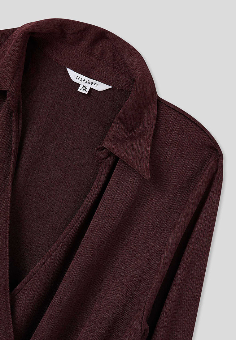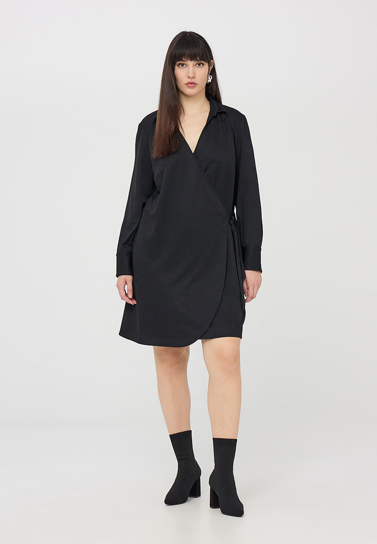 • Women's dress characterised by an elegant crossover with a side knot and featuring a collar.