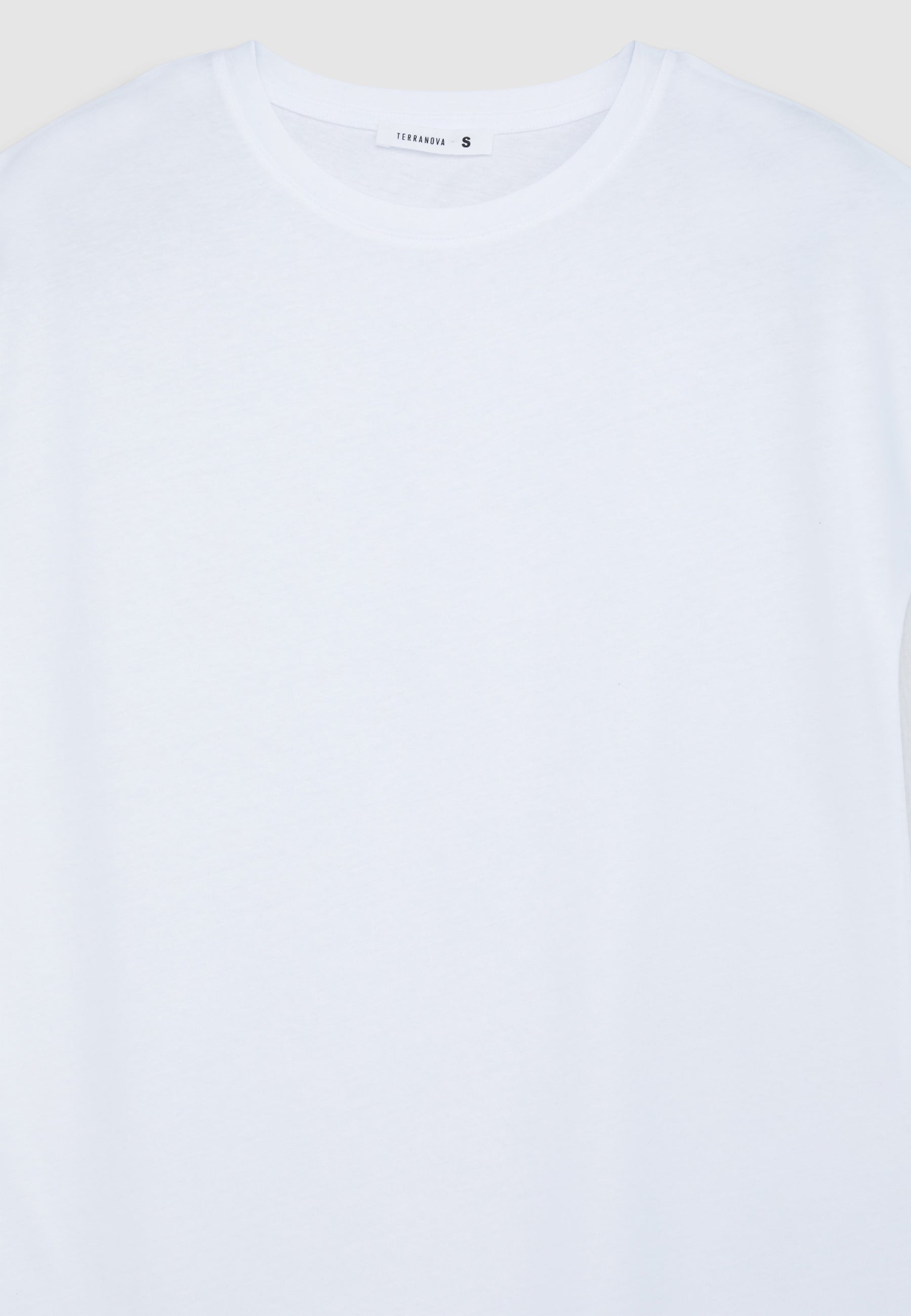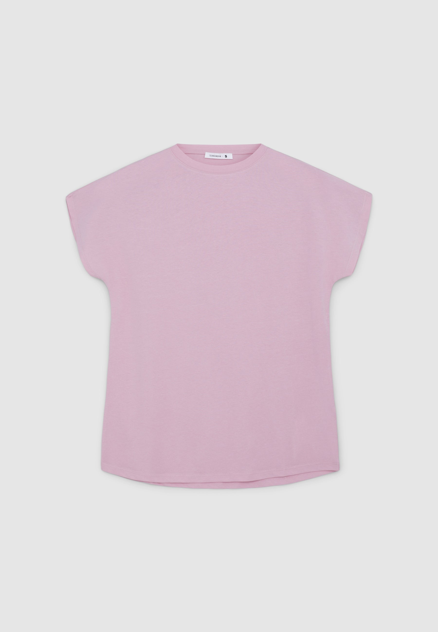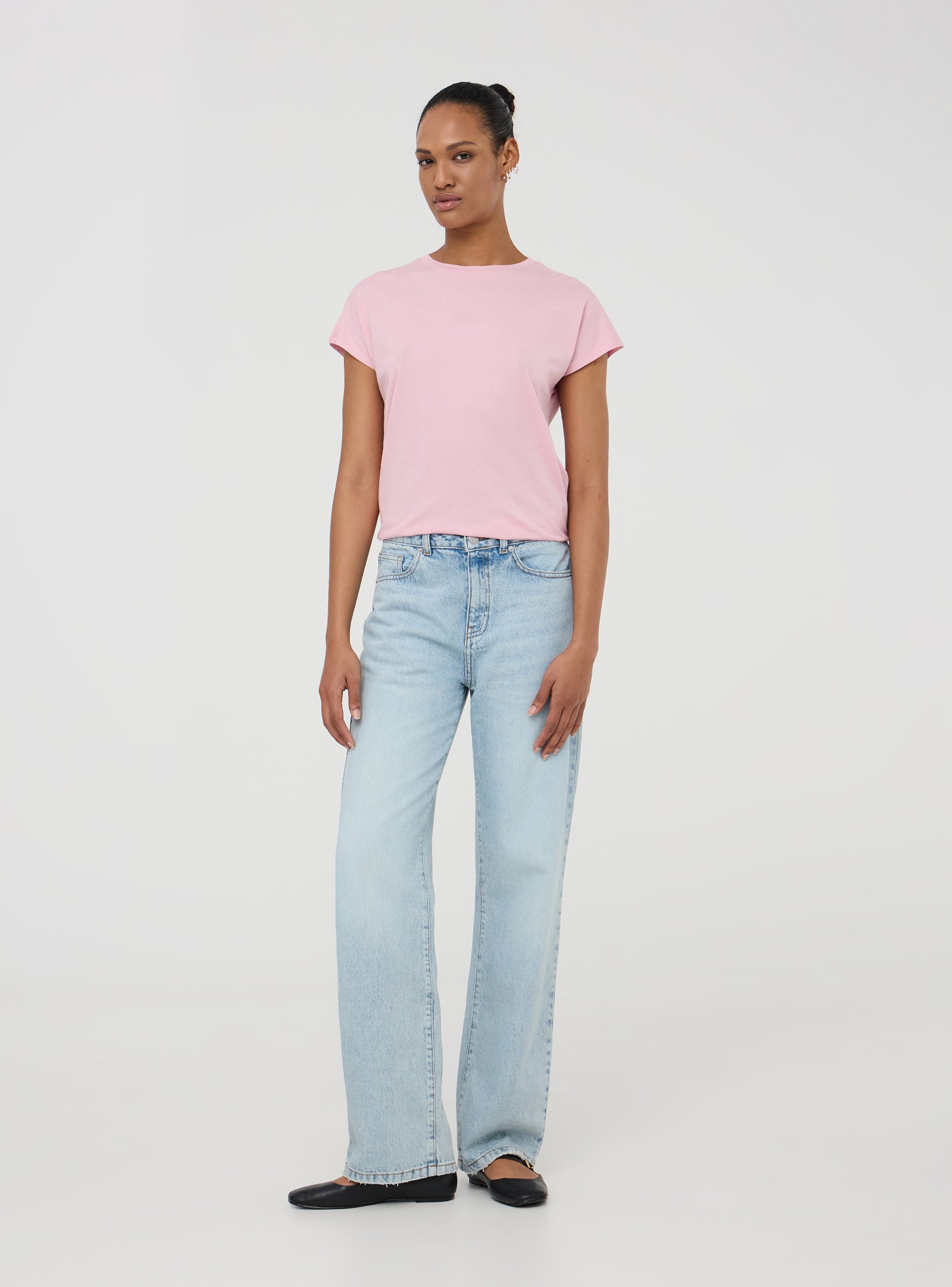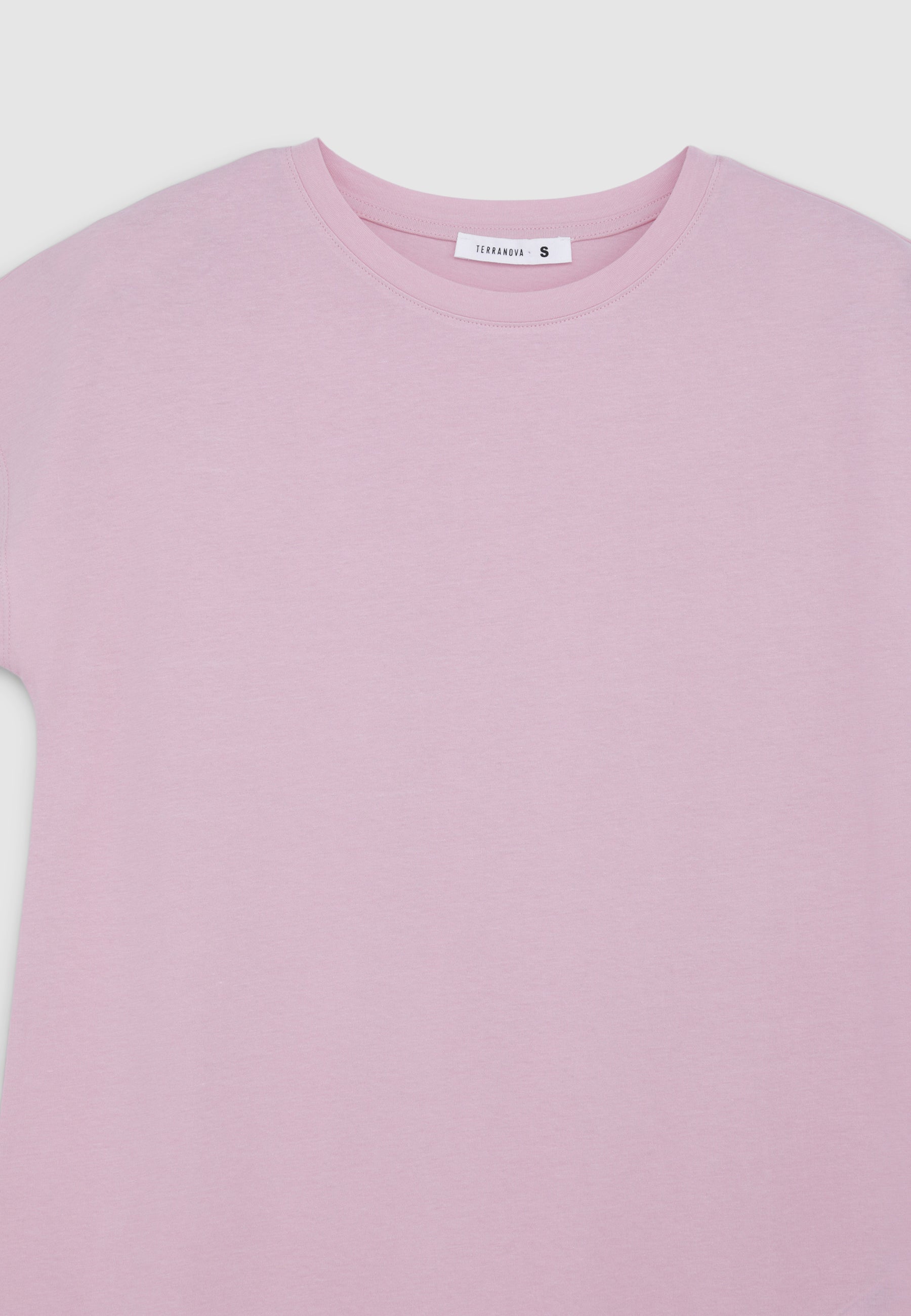 - Wide women's t-shirt with a straight cut and short sleeves.