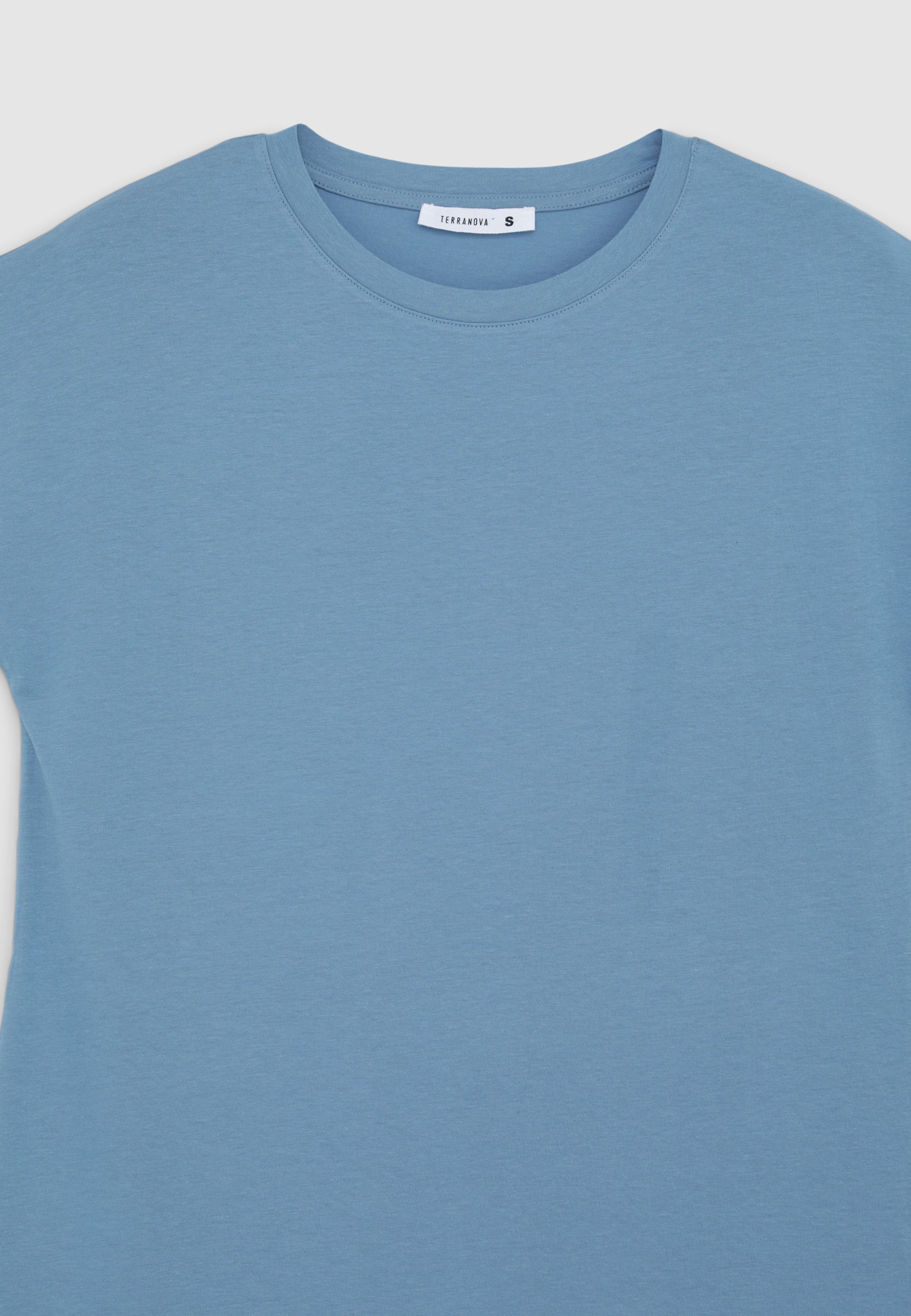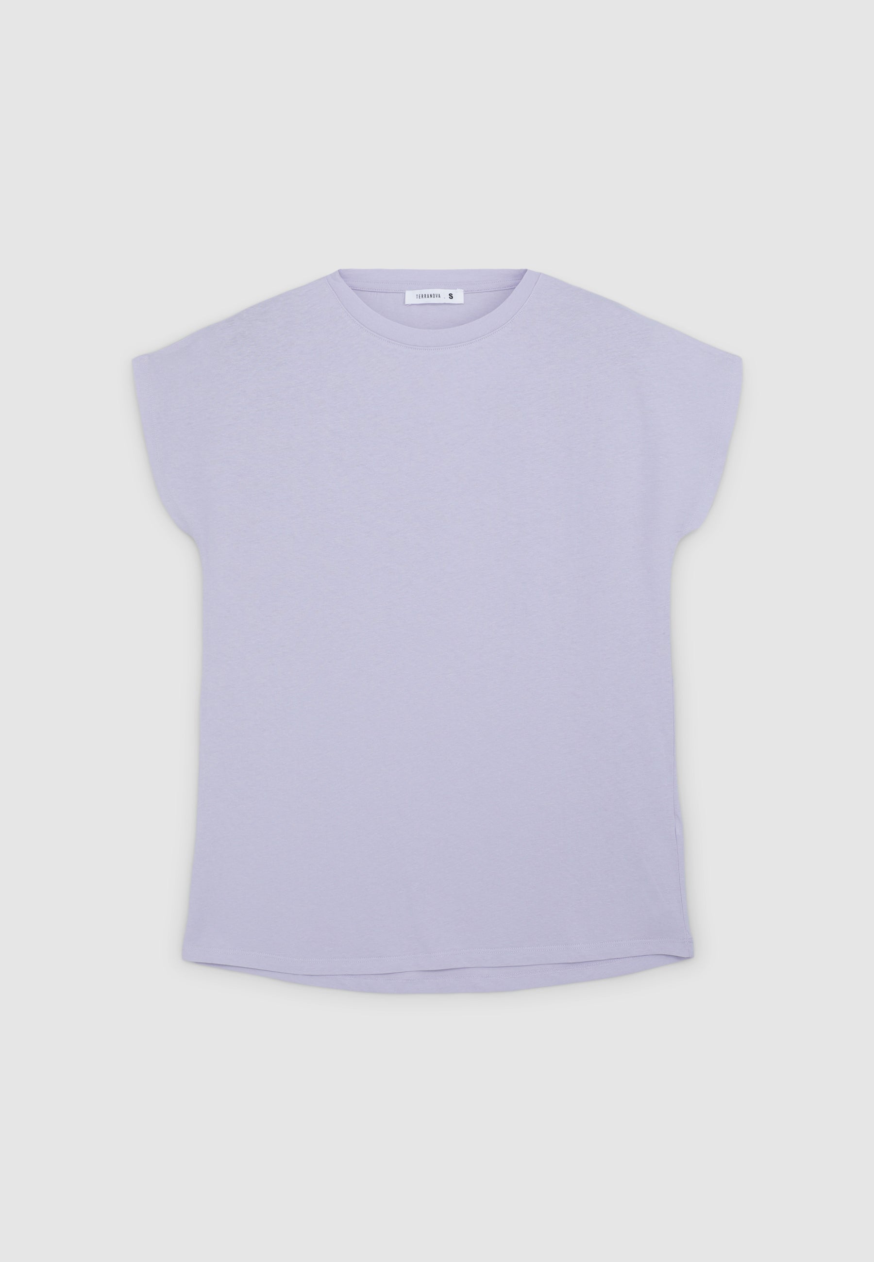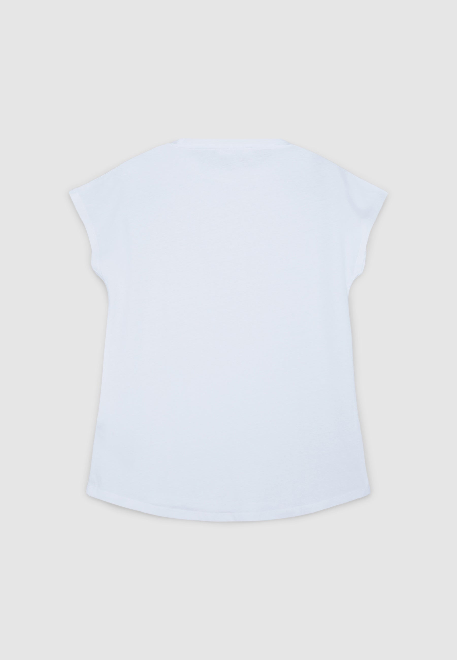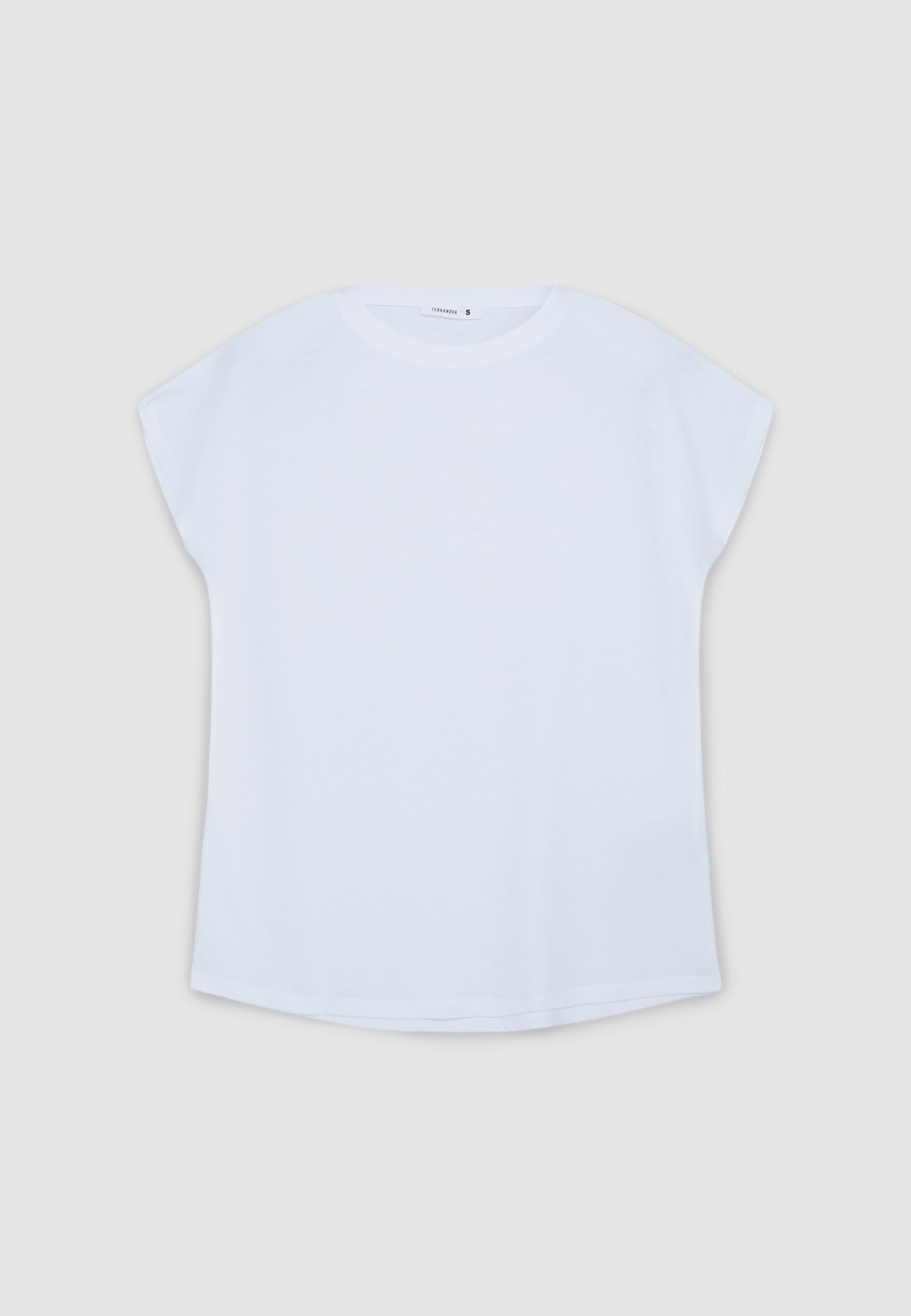 - Wide women's t-shirt with a straight cut and short sleeves.
