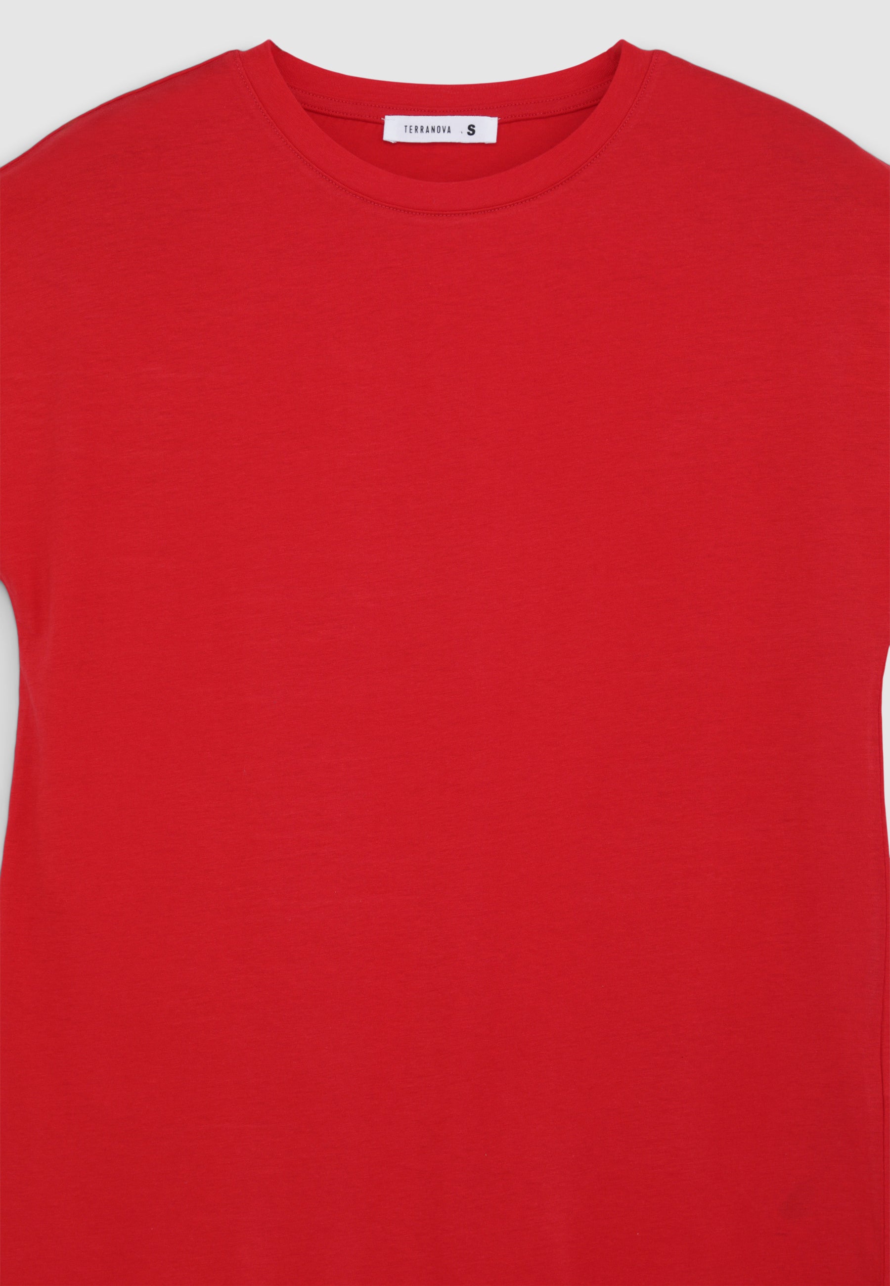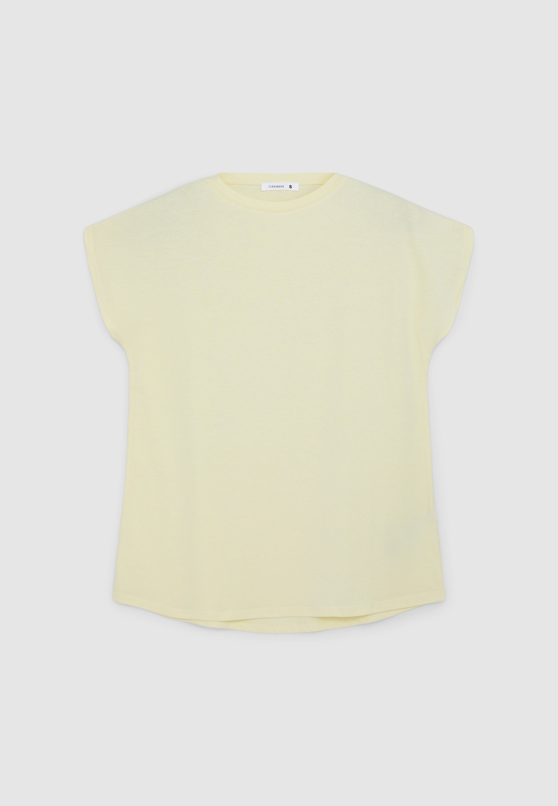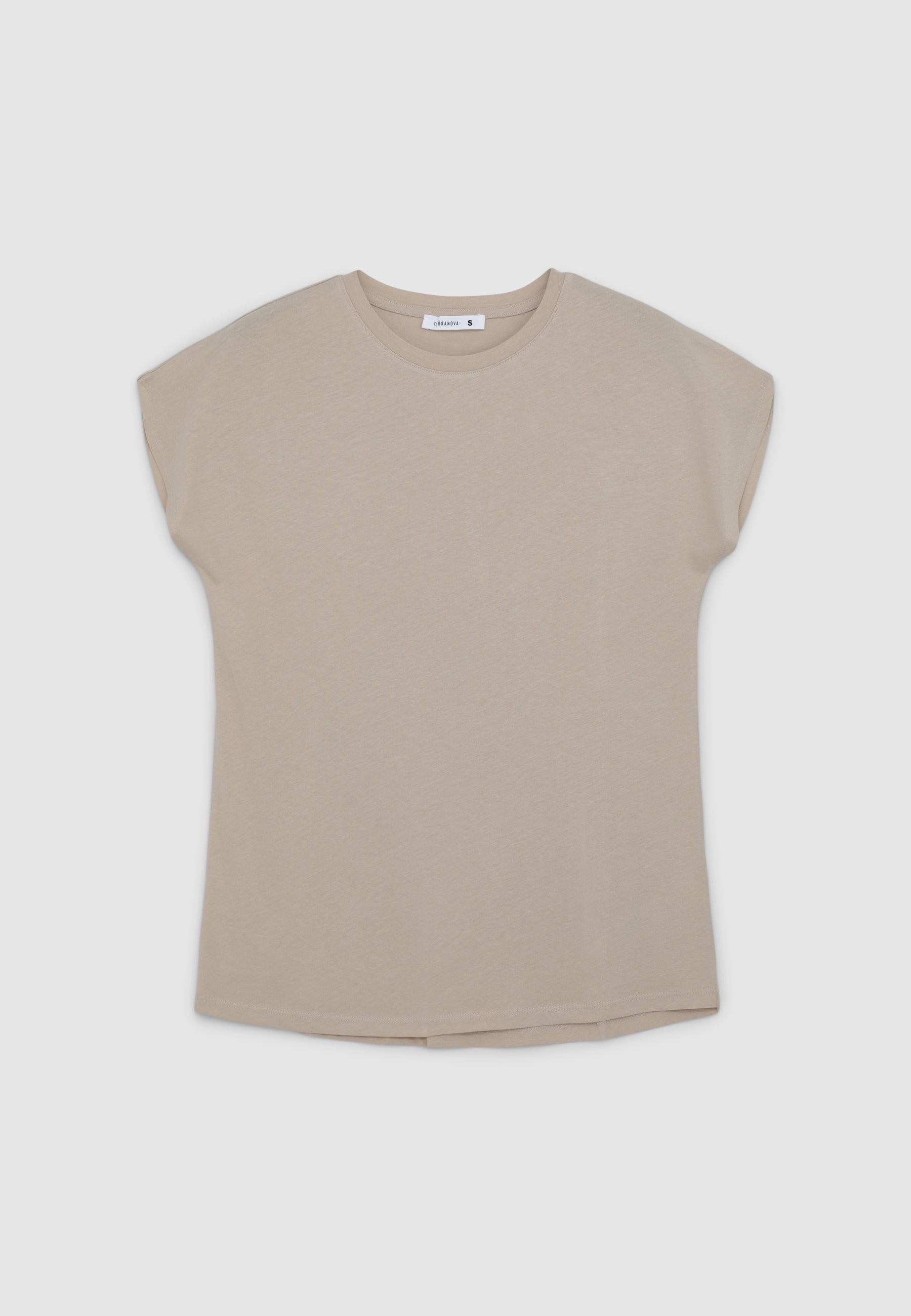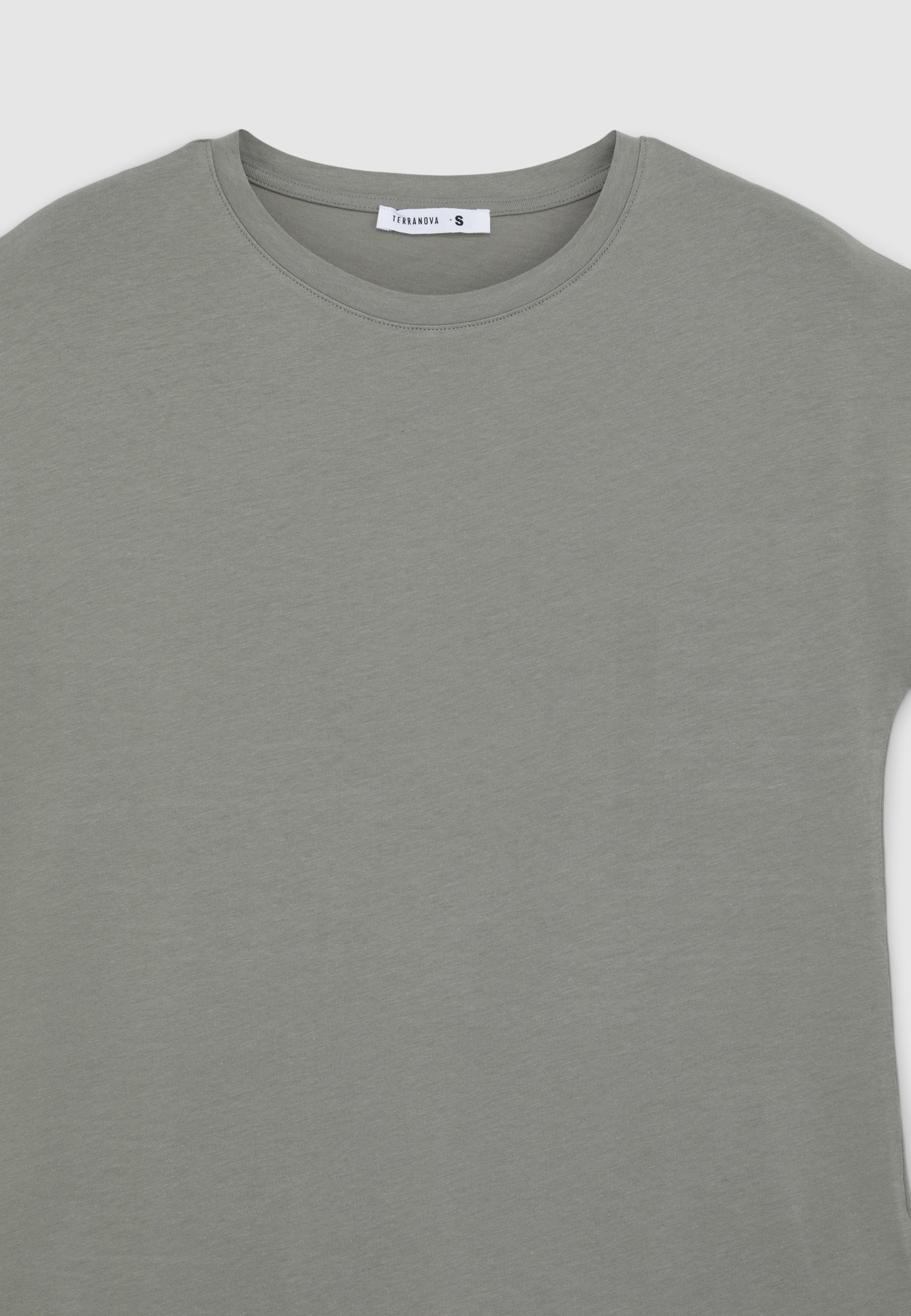 - Wide women's t-shirt with a straight cut and short sleeves.