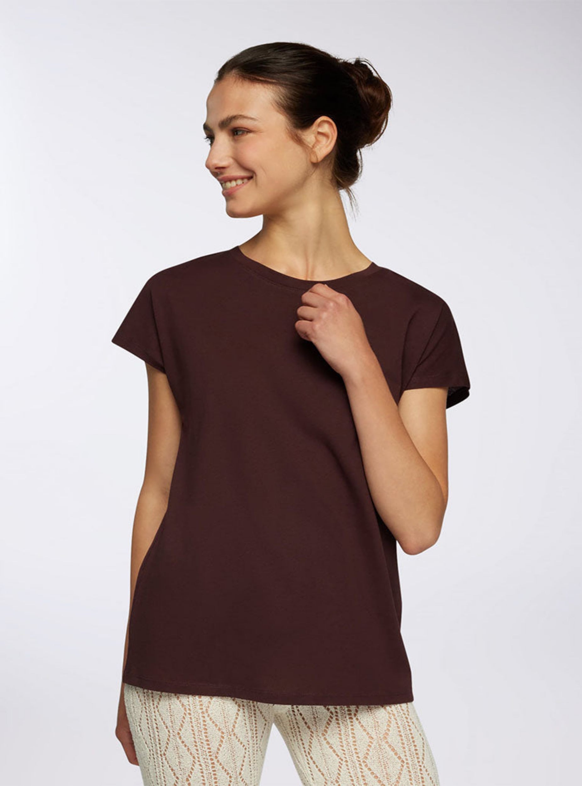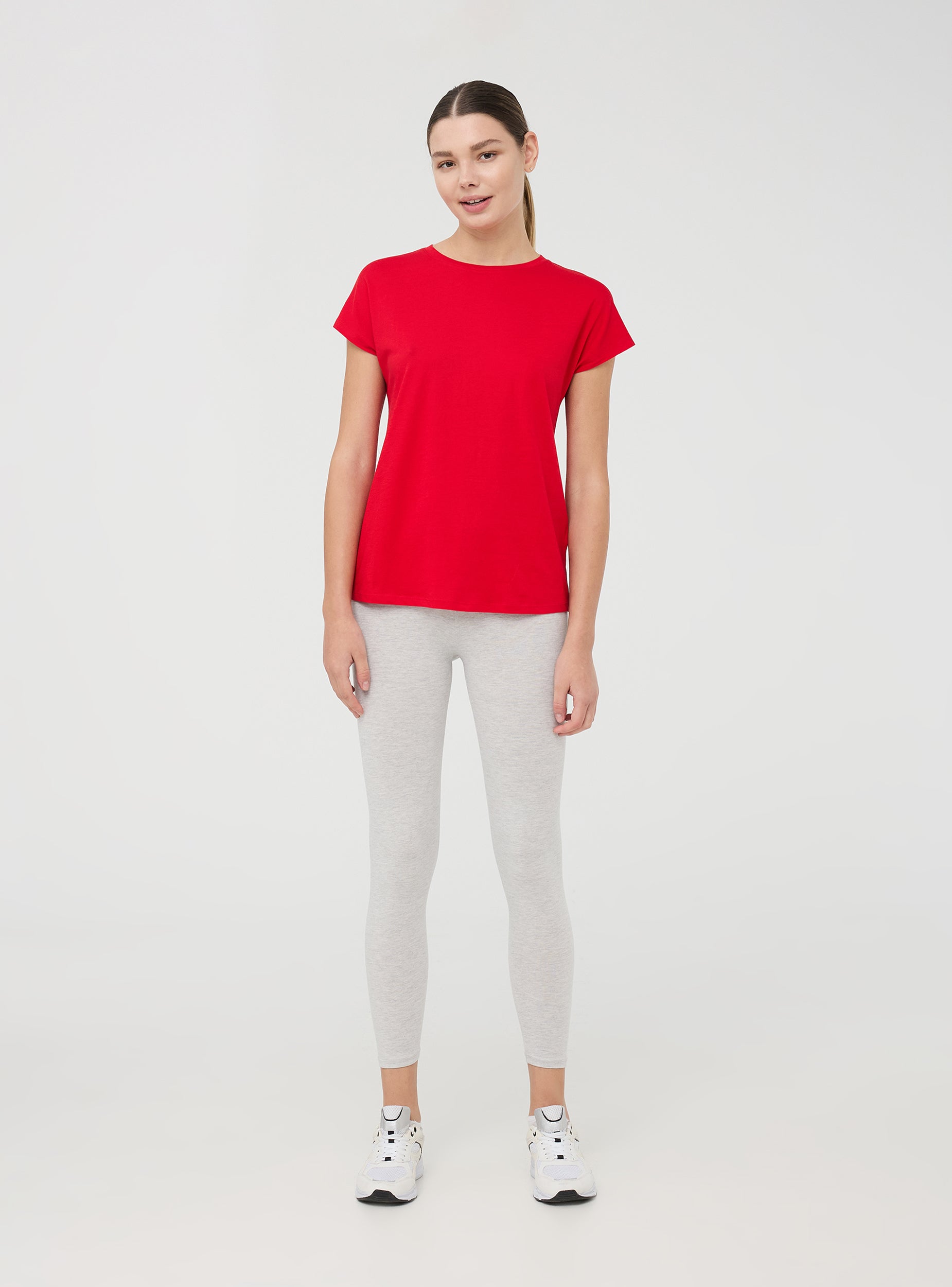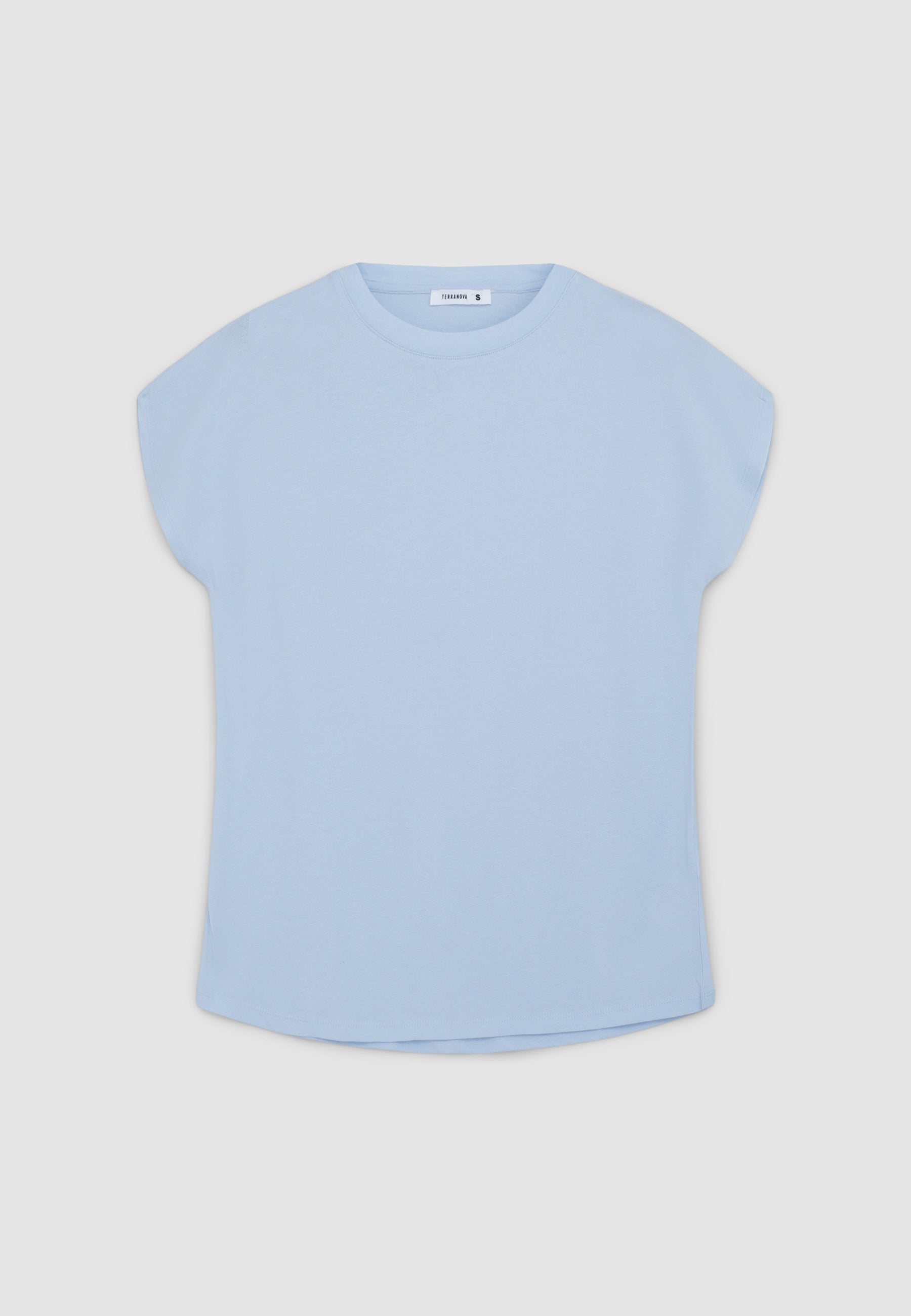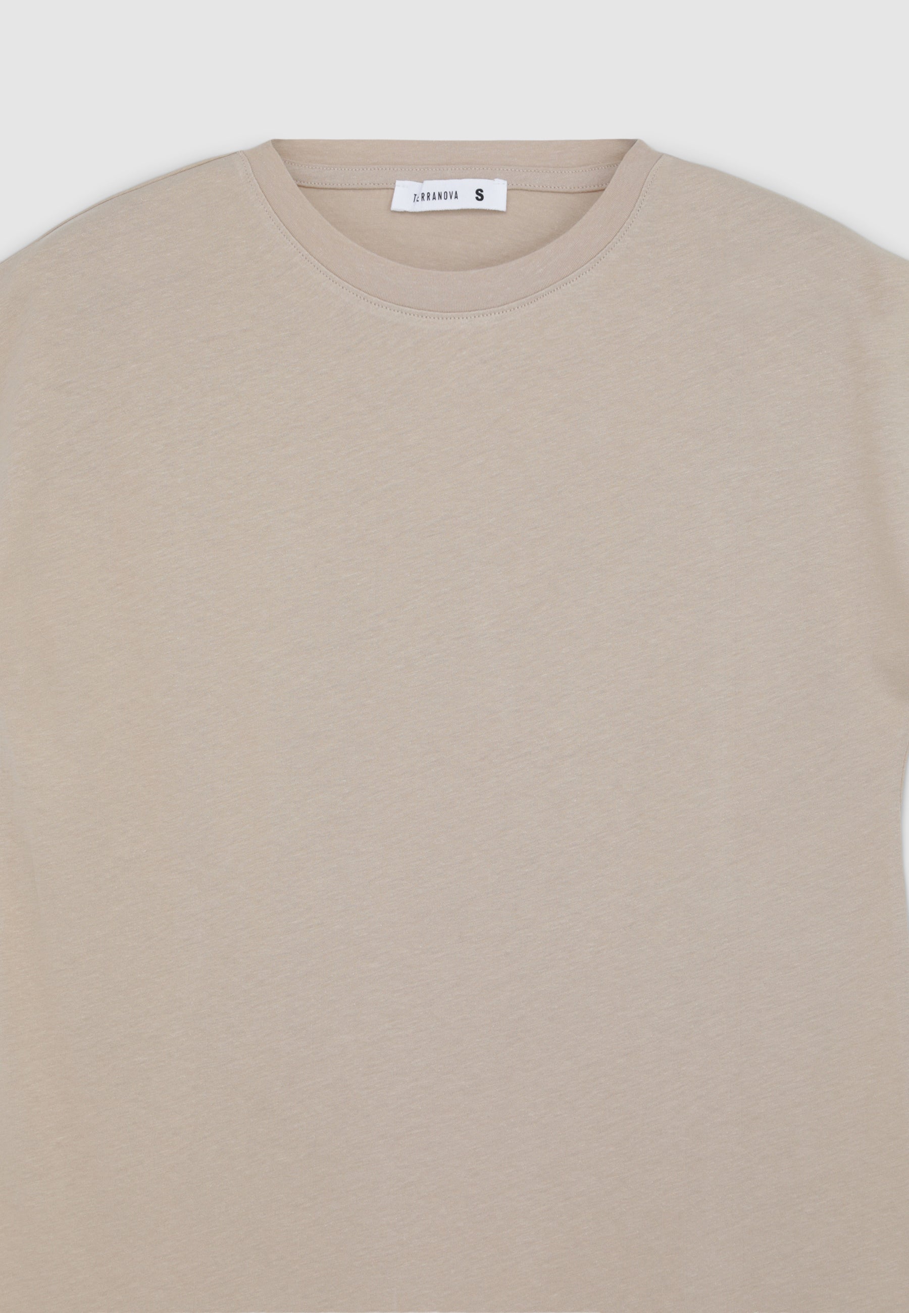 - Wide women's t-shirt with a straight cut and short sleeves.