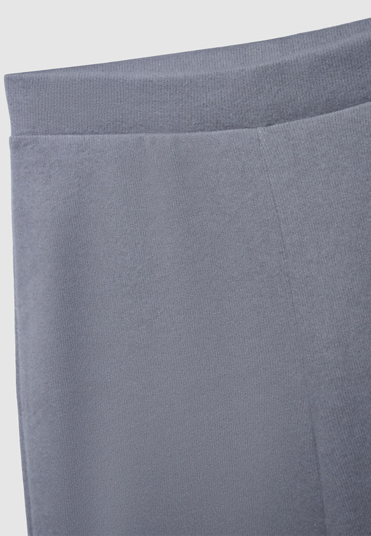 • Women's solid-color knit trousers with wide legs and a flowing silhouette.