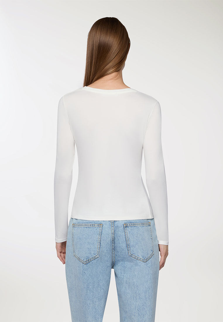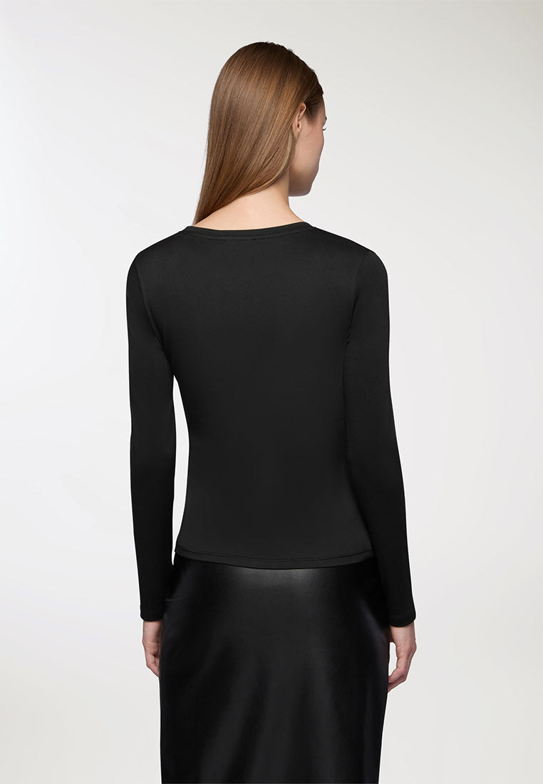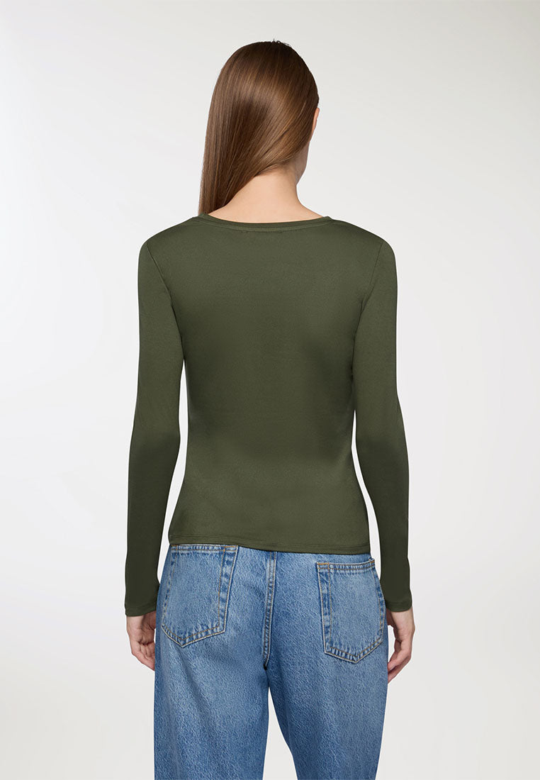 - Ideal for wearing alone in casual looks or as a layer under jackets, blazers, or cardigans during the colder months, it easily adapts to any occasion, from the office to leisure time.