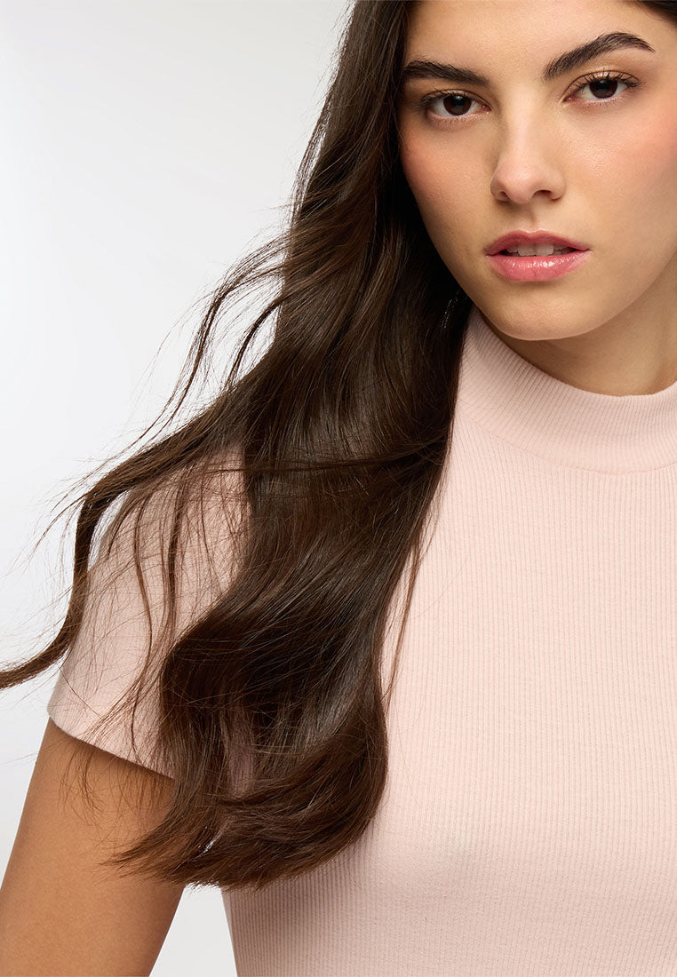 - Women's ribbed turtleneck t-shirt, basic and versatile.