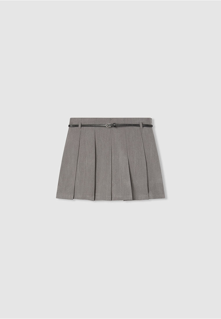 • Women's pleated skirt-shorts with a decorative belt.