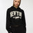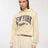 Heavy women's hoodie with adjustable drawstring and American college-style print on the front.
