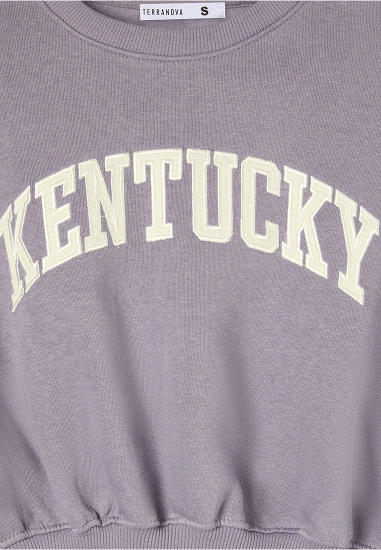 Heavy women's sweatshirt with American college-style print and cropped fit for a sporty and edgy look.