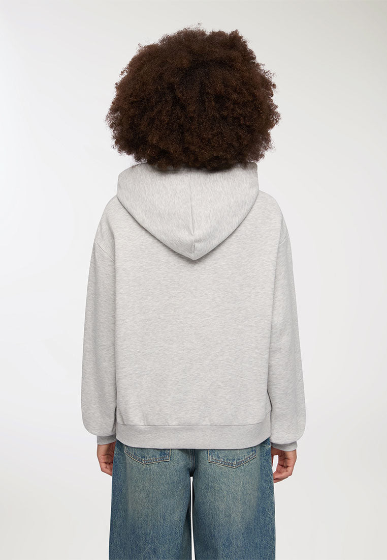 The zip-free design is enhanced by a front kangaroo pocket, ideal for warming hands.
