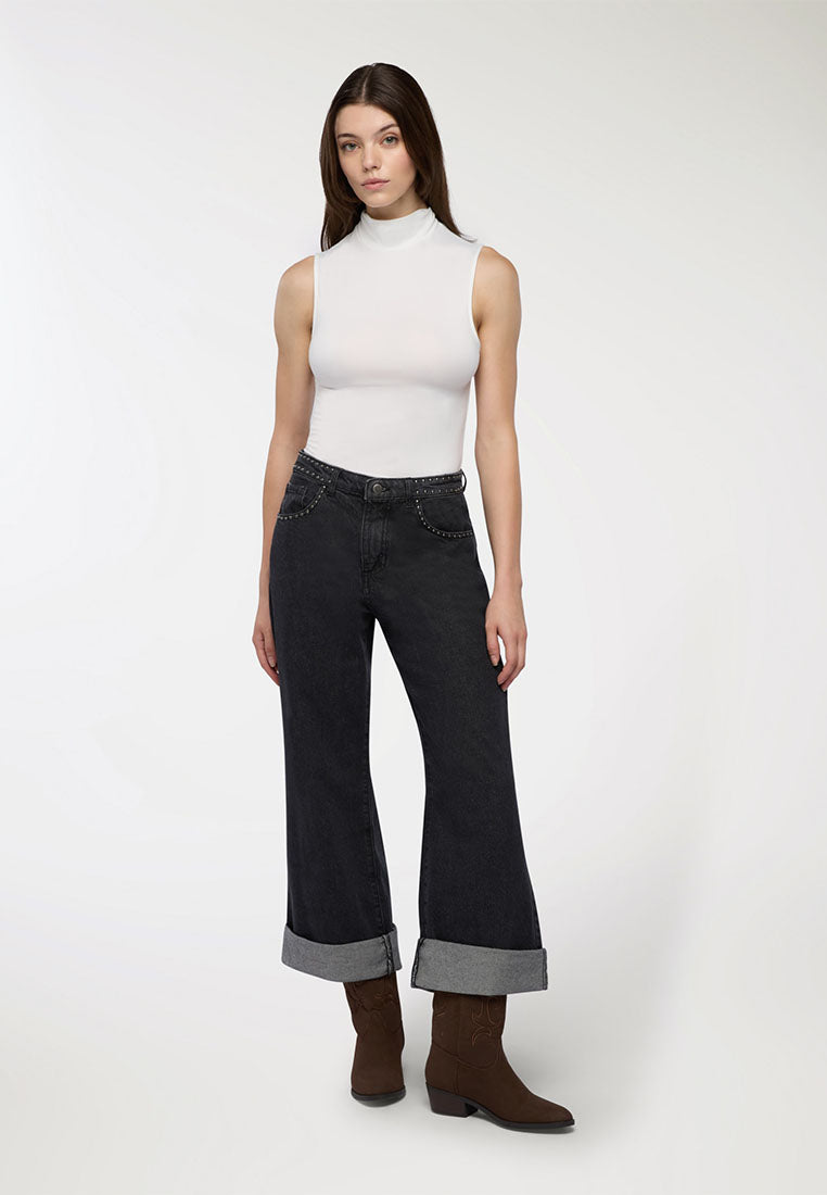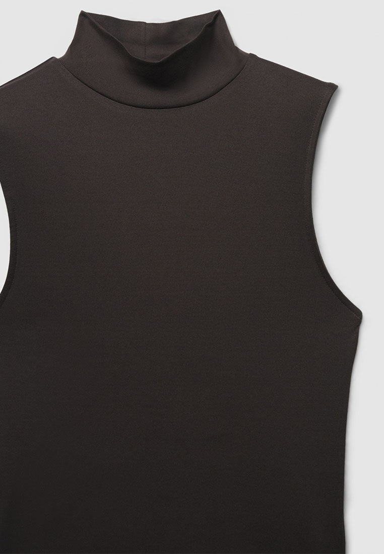 ● Women's sleeveless tank top in a solid colour with a mock neck and a fitted silhouette. ● Regular length, ideal for layering under blazers or cardigans, but also pairs easily with jeans or skirts for a clean, polished look. ● The soft fabric enhances the silhouette; slightly capped shoulders and a simple cut make this top versatile from work to leisure.